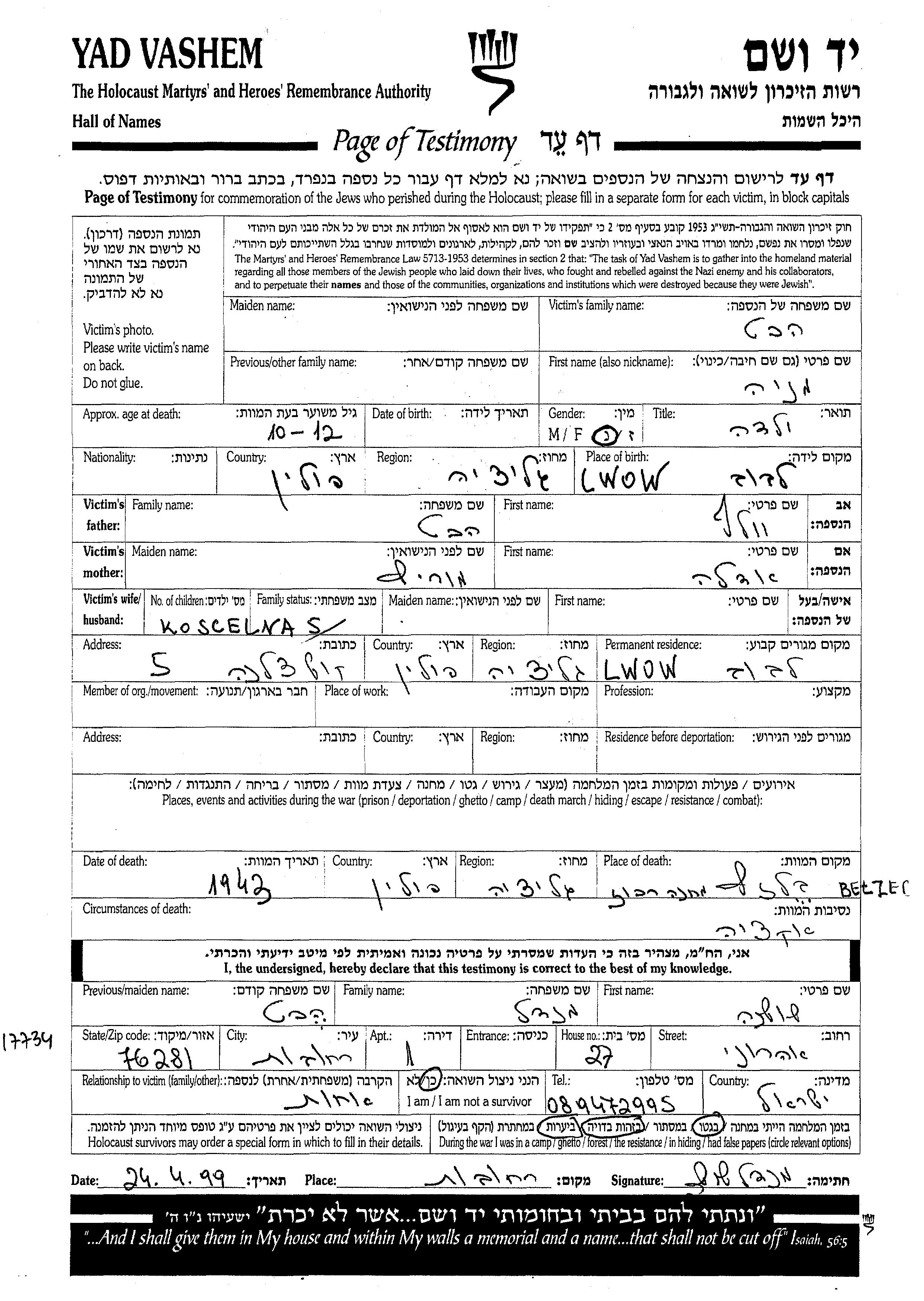 Yad Vashem - Pages of Testimony Names Memorial Collection
