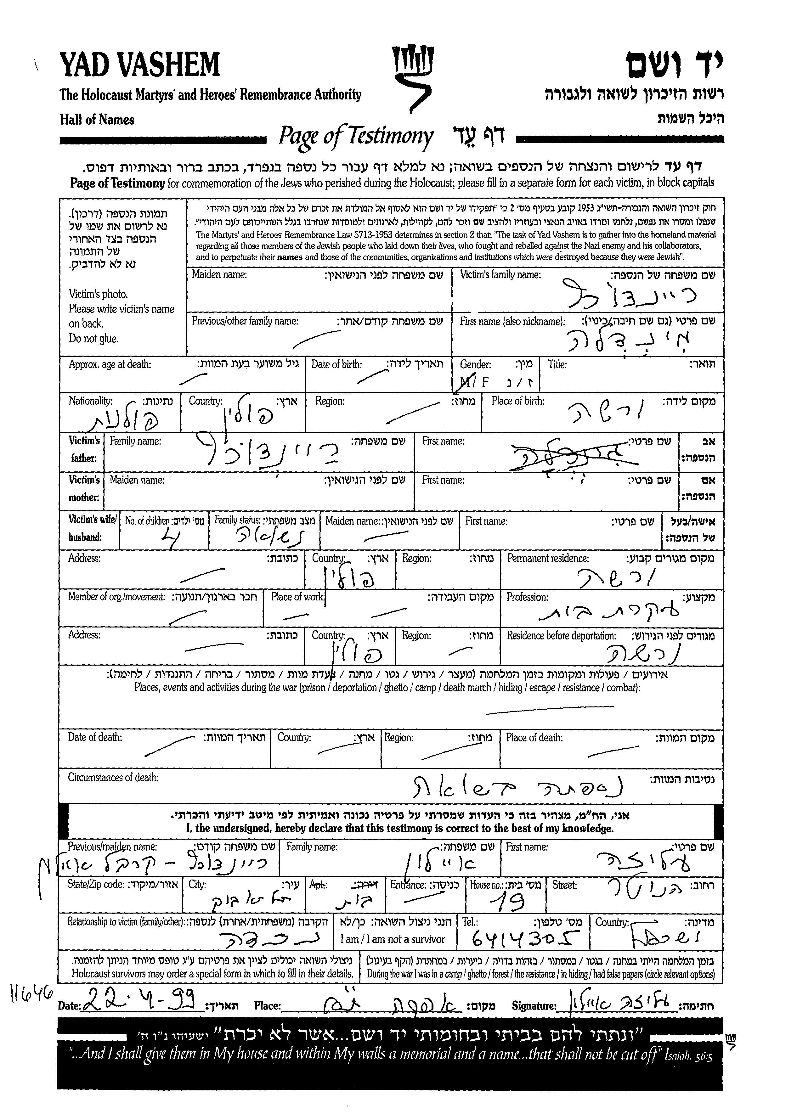 Yad Vashem - Pages of Testimony Names Memorial Collection