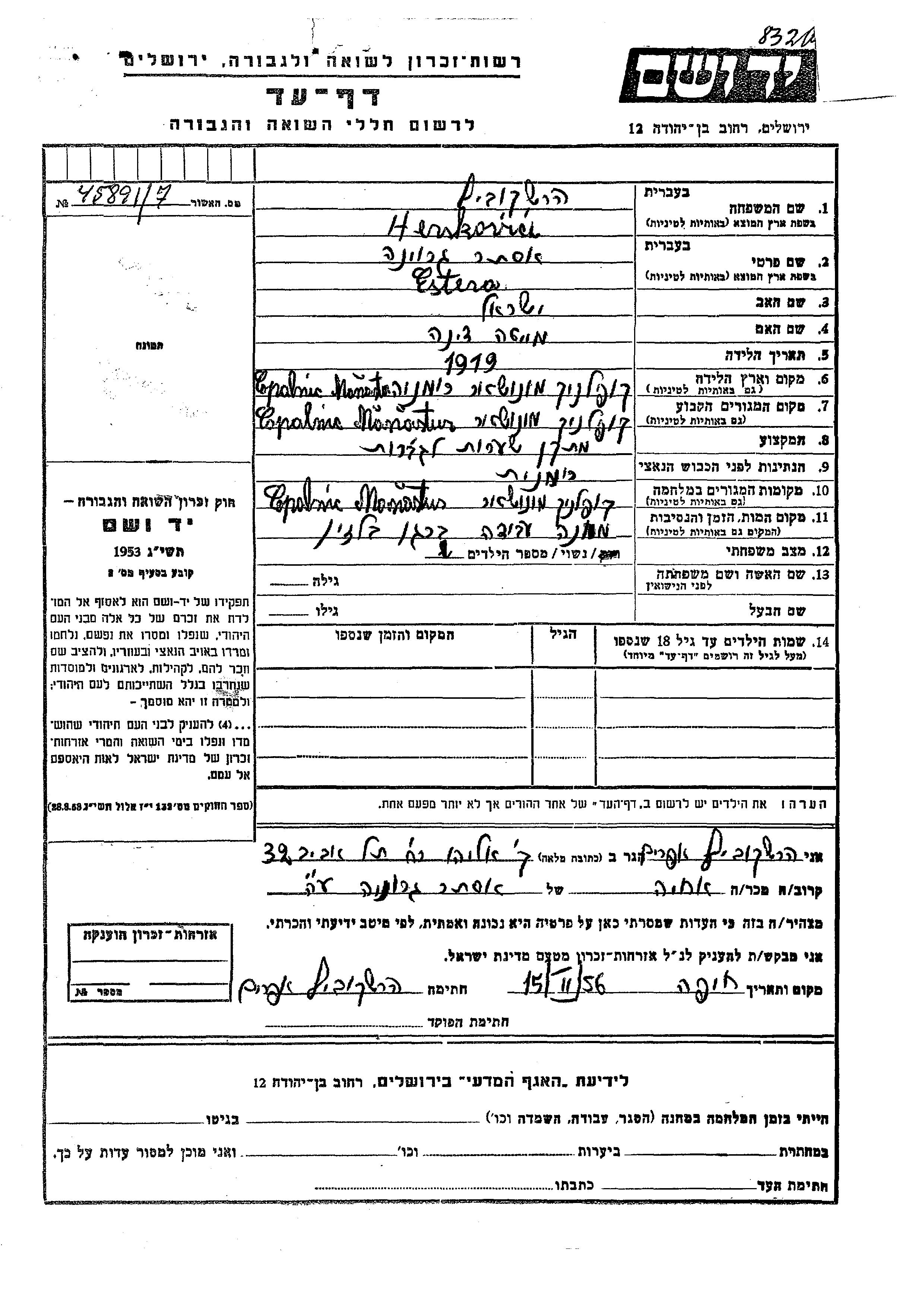 Yad Vashem - Pages of Testimony Names Memorial Collection