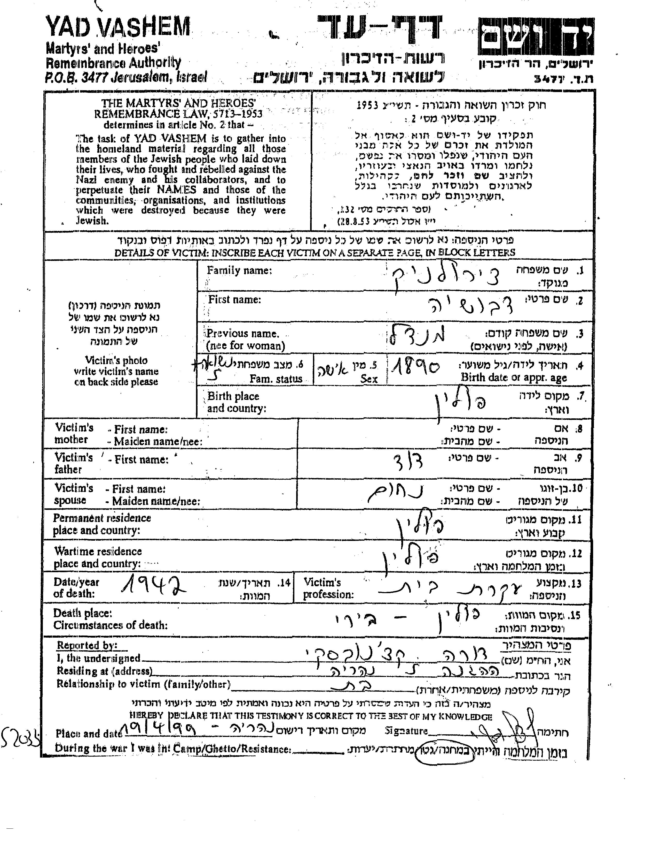 Yad Vashem - Pages of Testimony Names Memorial Collection