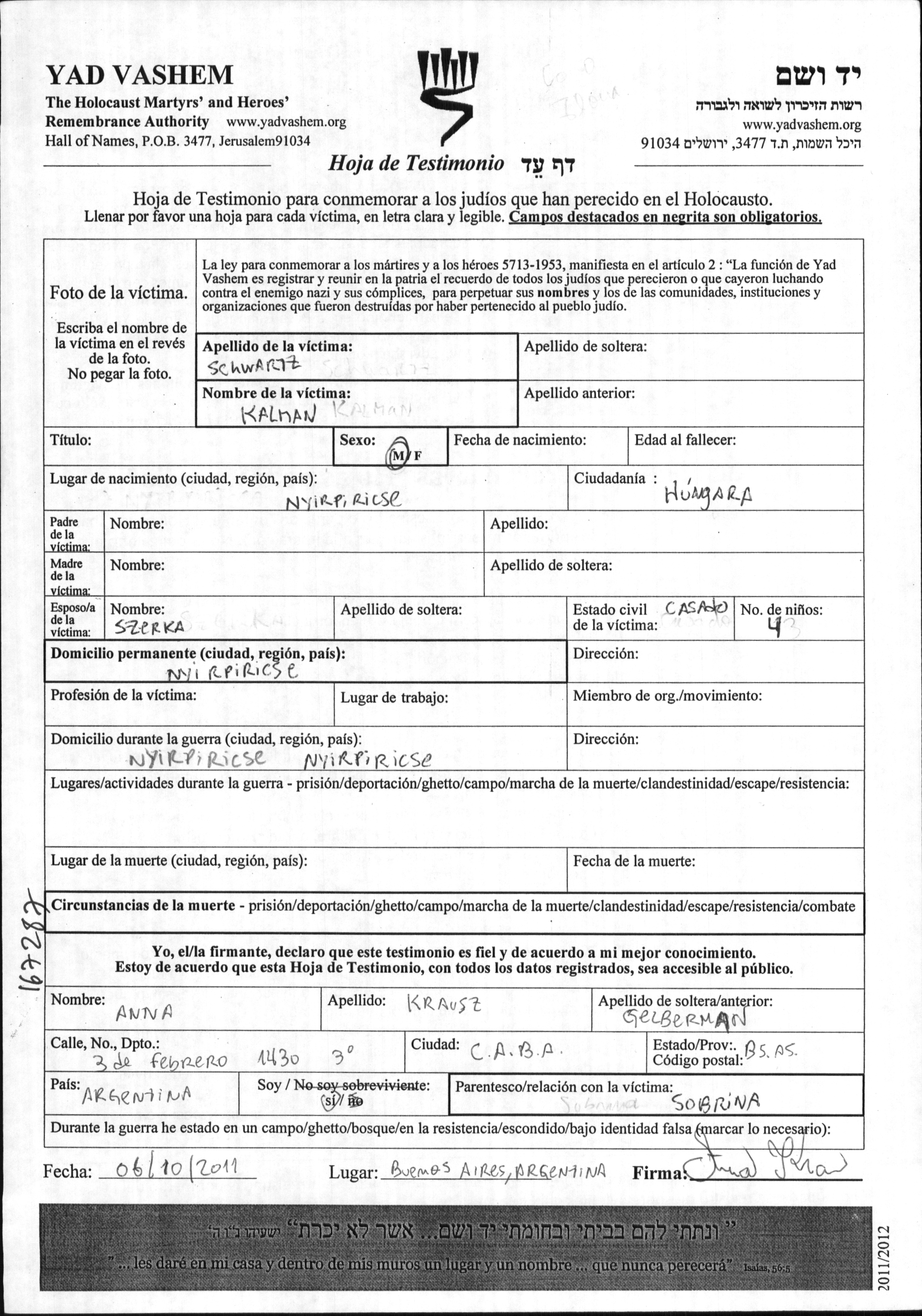 Lieu de résidence pendant la guerre/Shoah
