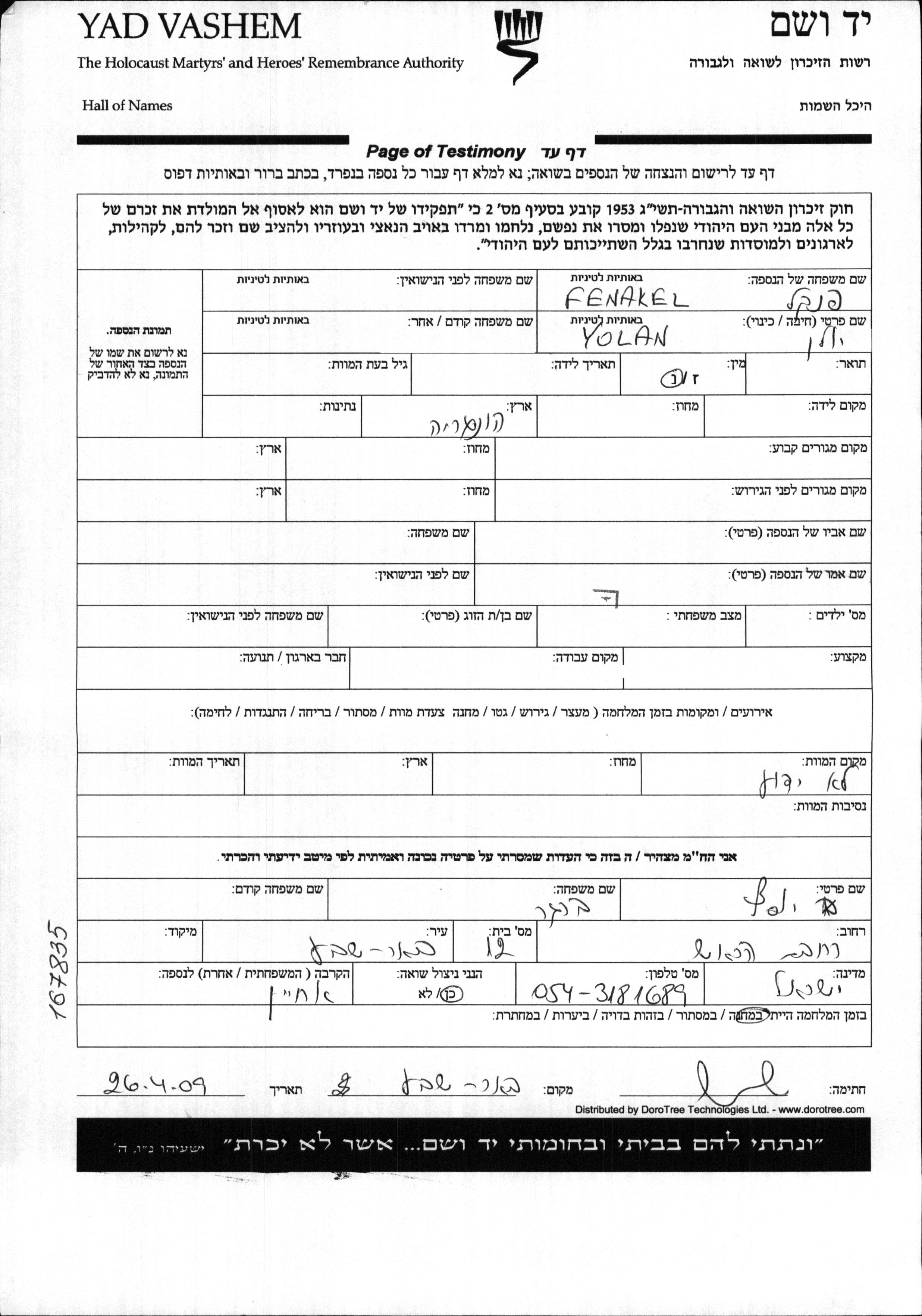 Yad Vashem - Pages of Testimony Names Memorial Collection