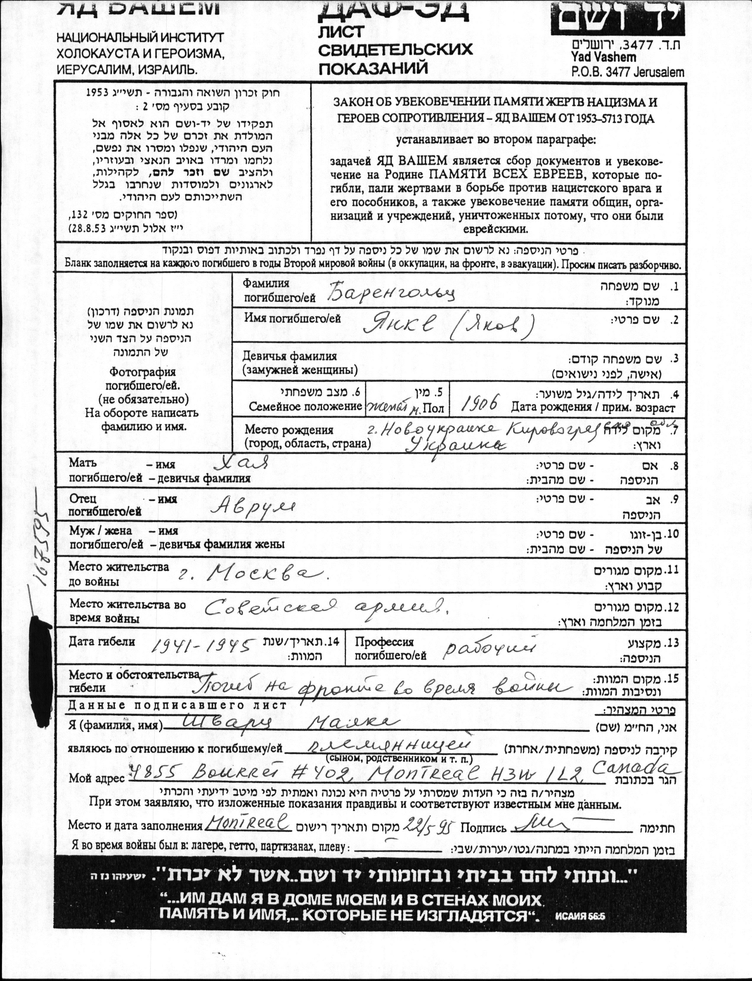 Recherche par nom du dépositeur de la Feuille de témoignage. Cette recherché indique aussi les noms de jeunes filles.