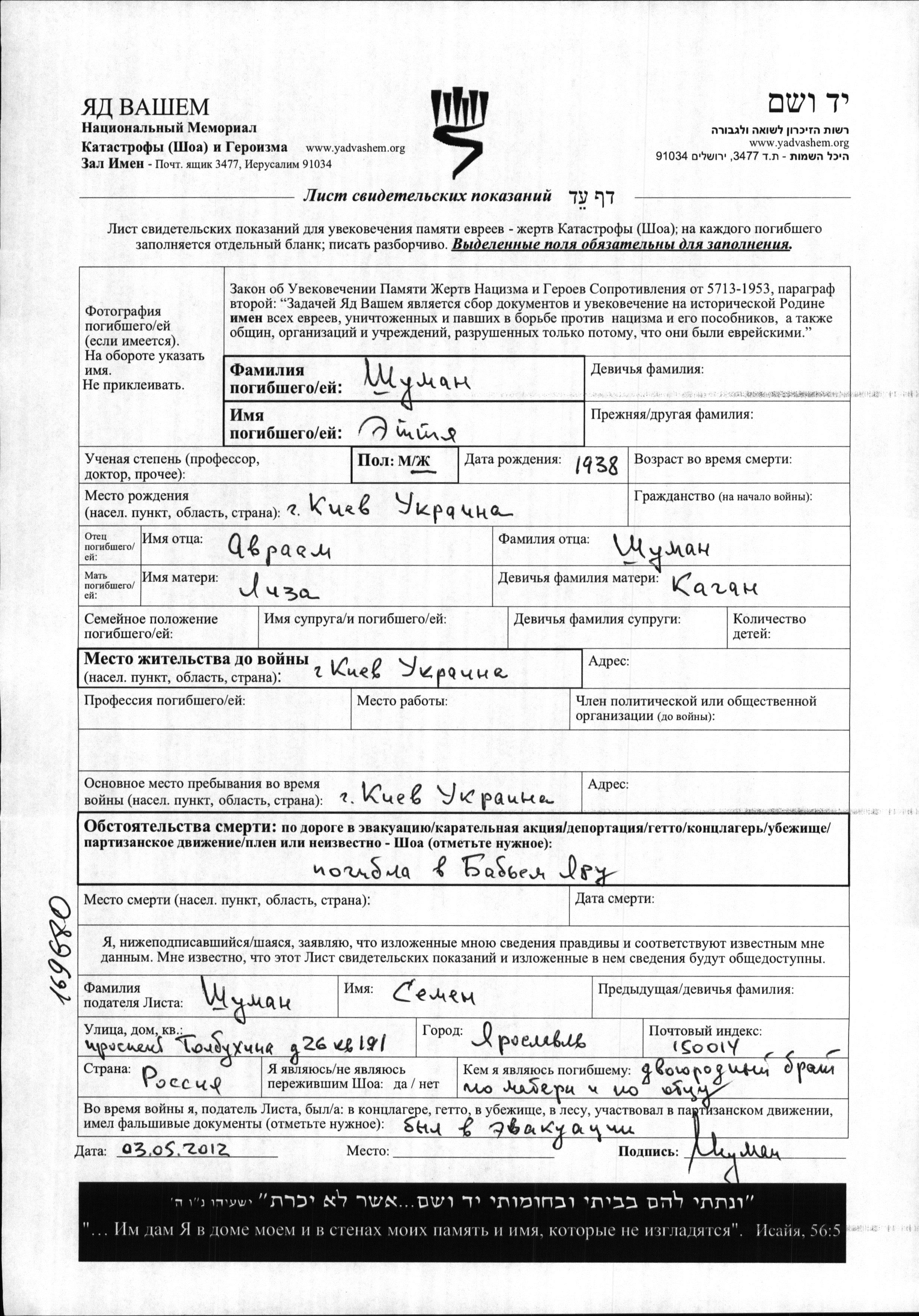 Yad Vashem - Pages of Testimony Names Memorial Collection