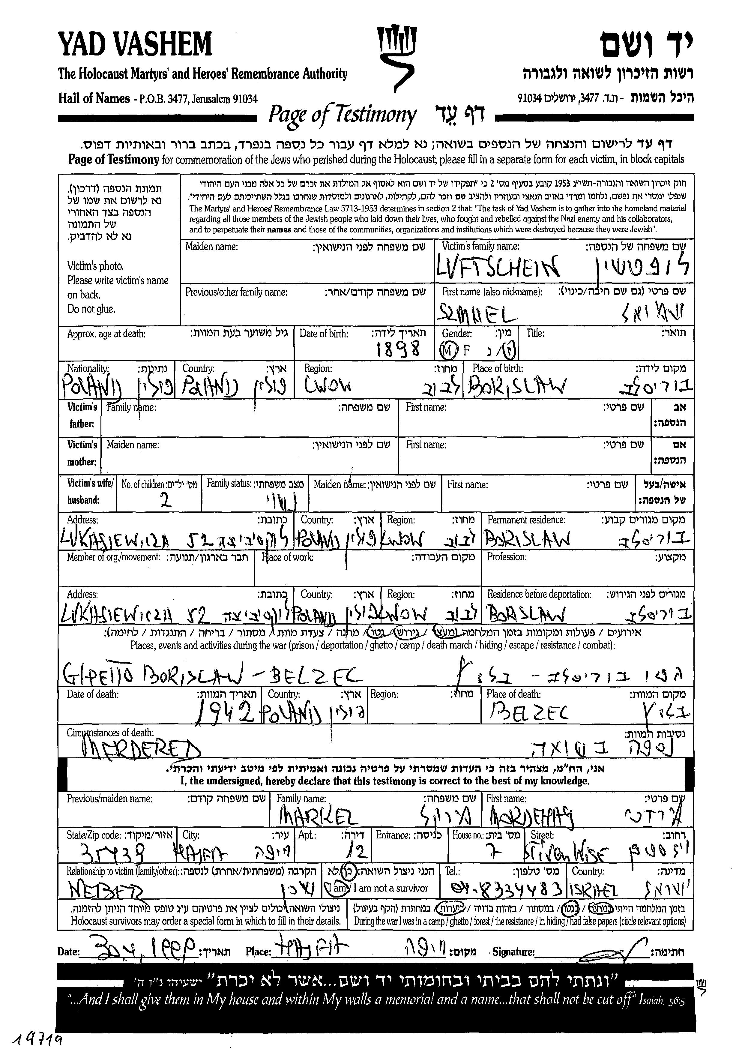 Yad Vashem - Pages of Testimony Names Memorial Collection
