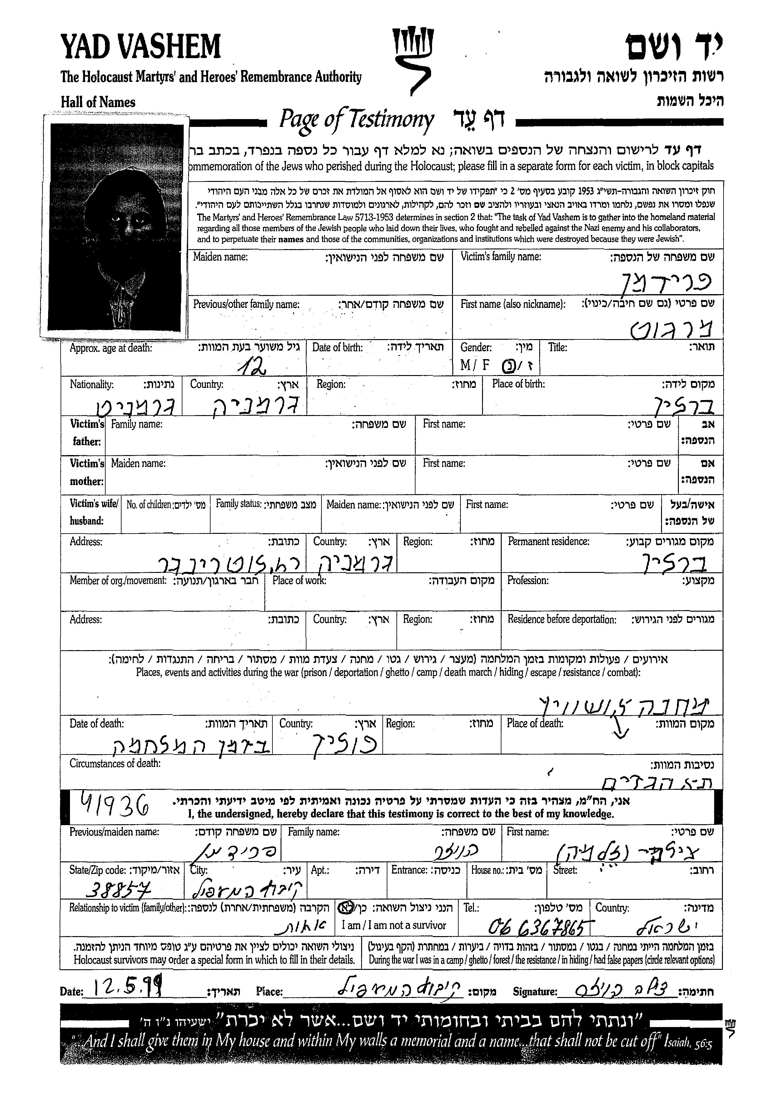 Yad Vashem - Pages of Testimony Names Memorial Collection