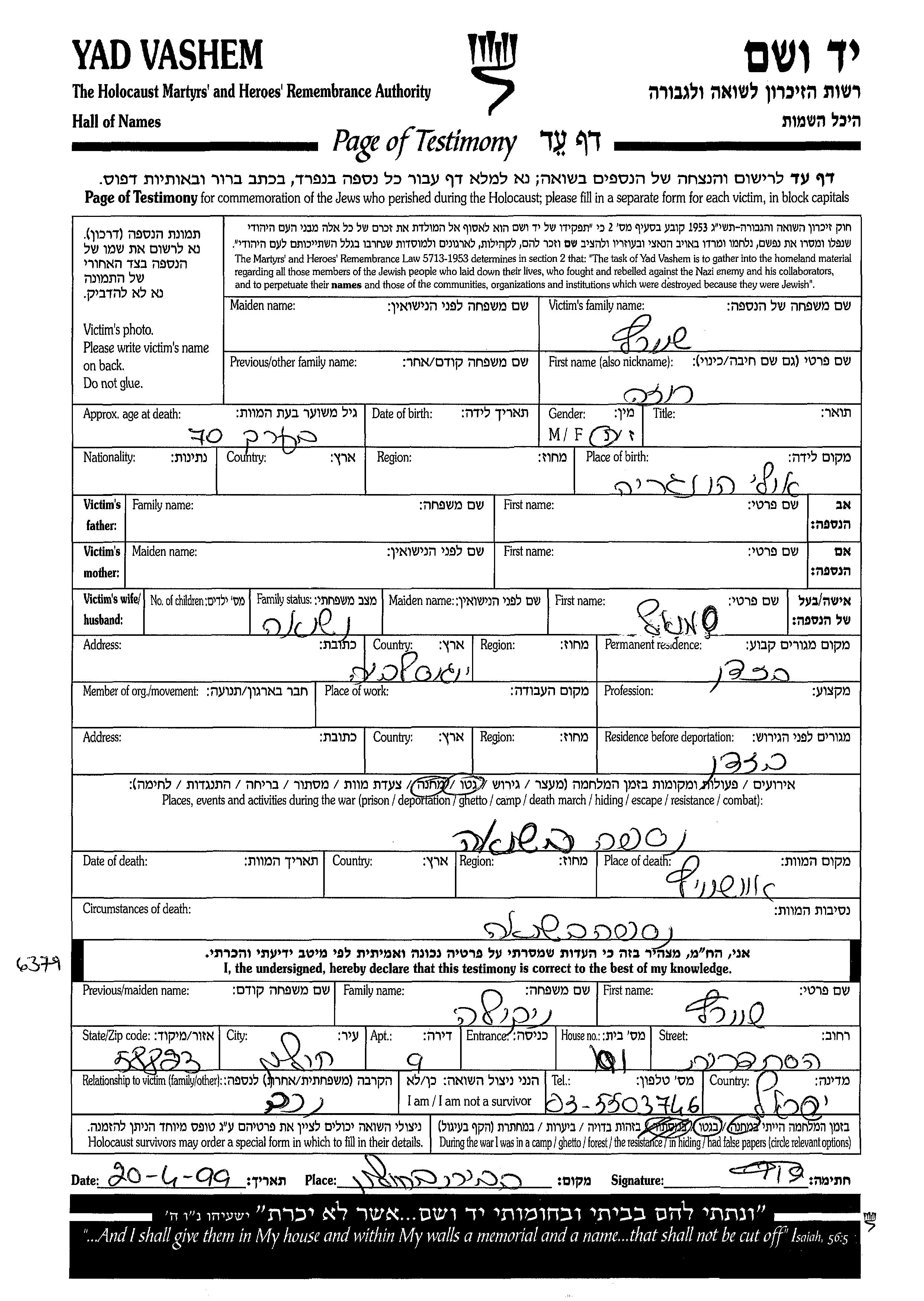Yad Vashem - Pages of Testimony Names Memorial Collection