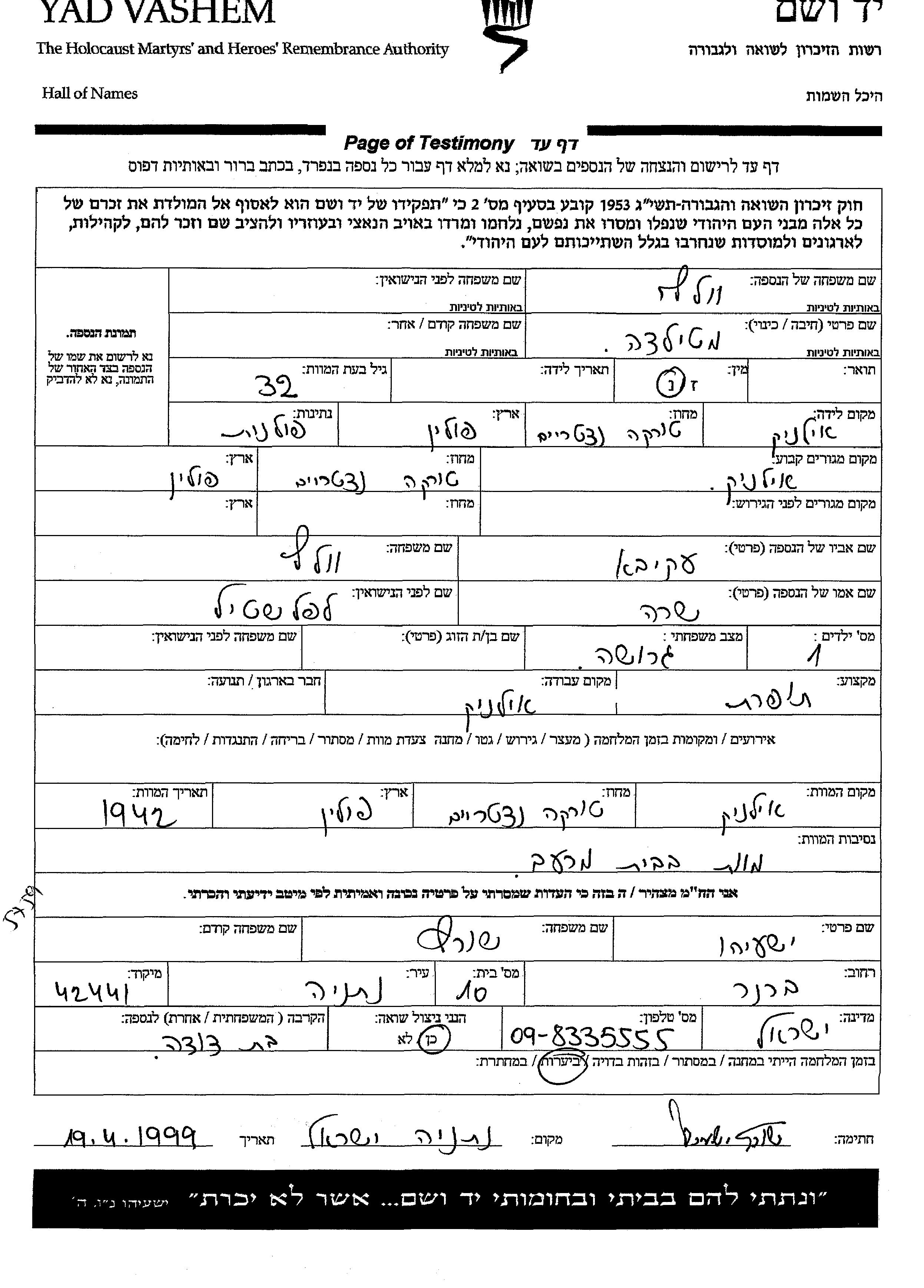 Yad Vashem - Pages of Testimony Names Memorial Collection