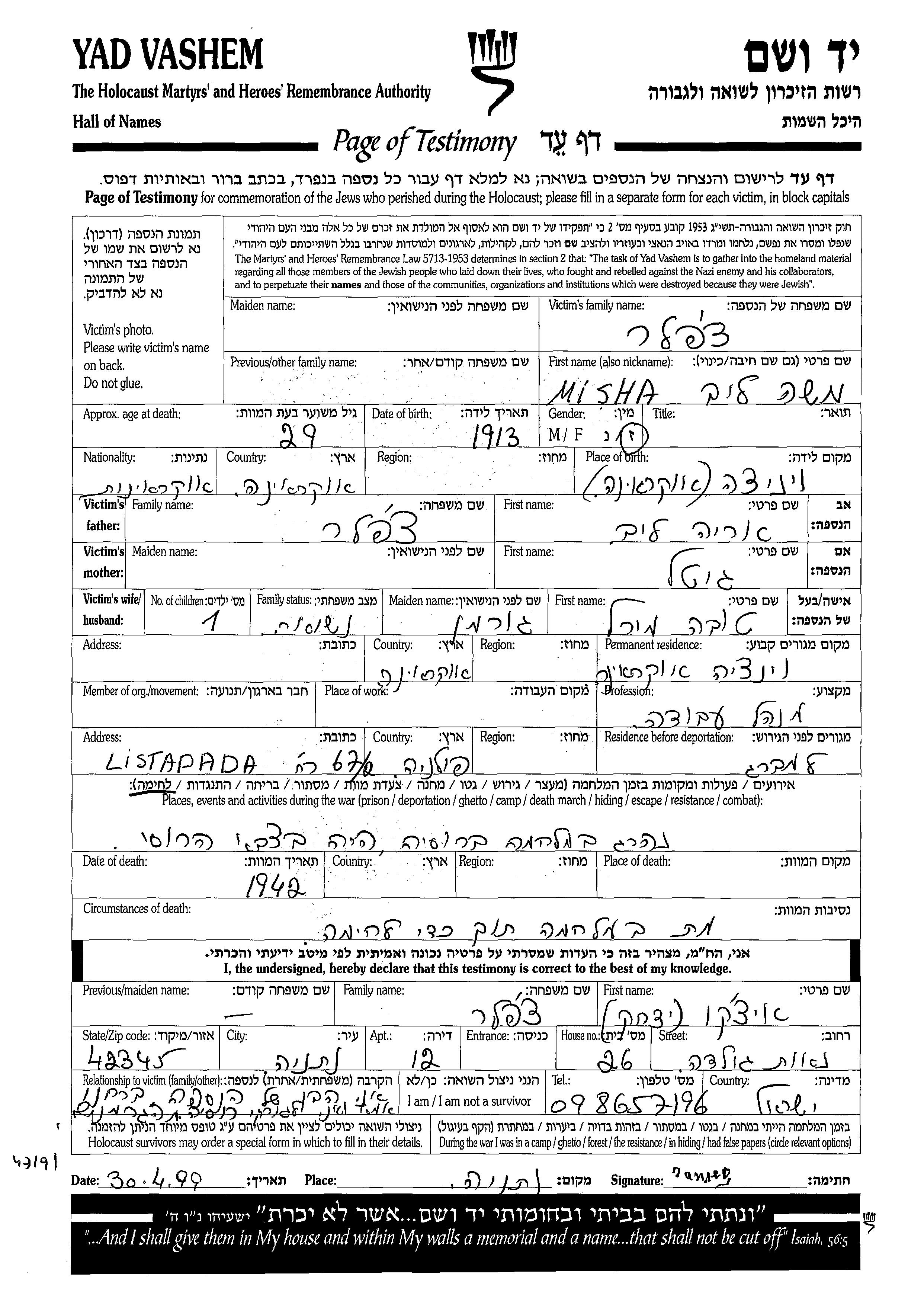 Yad Vashem - Pages of Testimony Names Memorial Collection