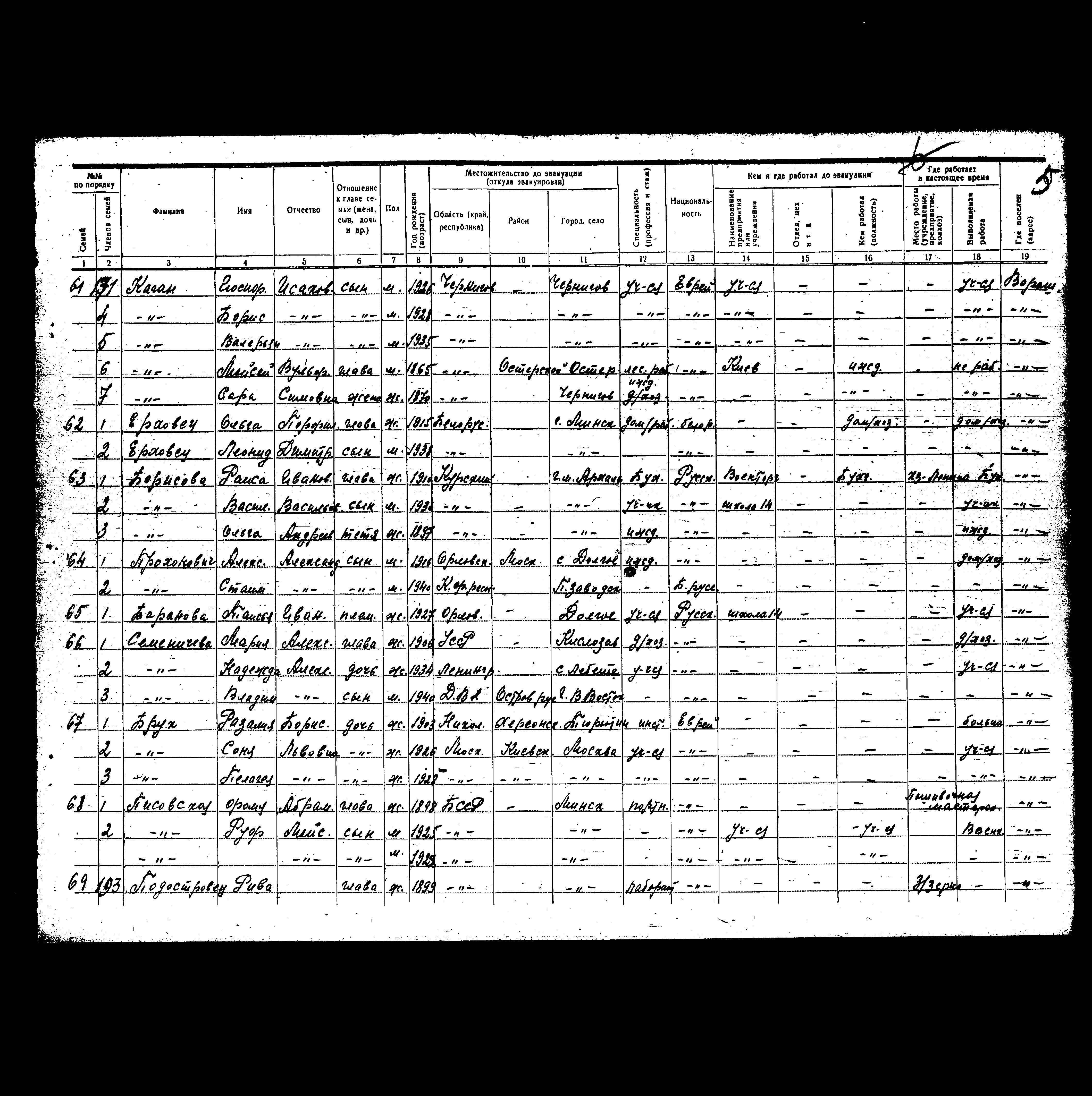 Kagan Sara 1870 Chernigov, אוקראינה (ברה"מ) רשימת מפונים