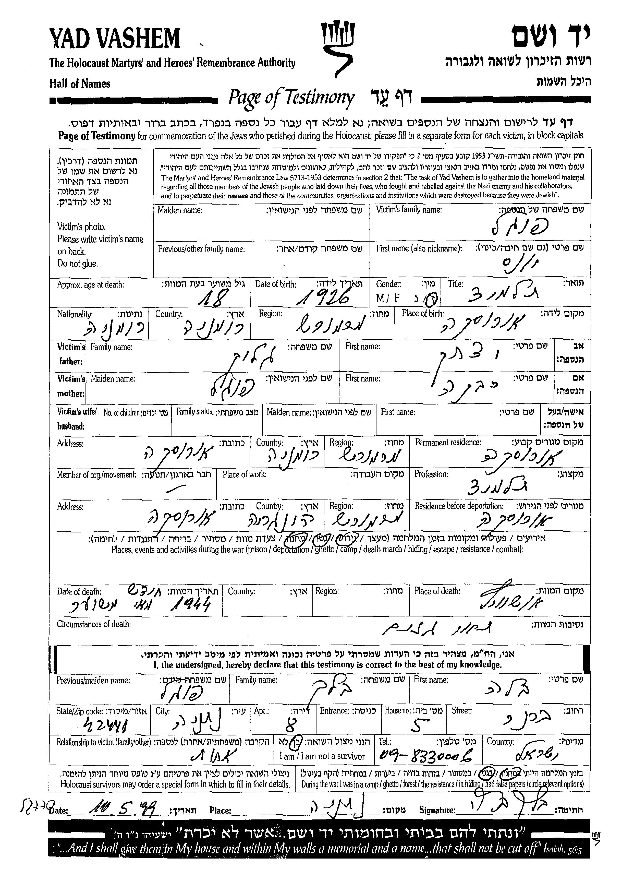 יד ושם - המפעל להנצחת השמות בדפי עד