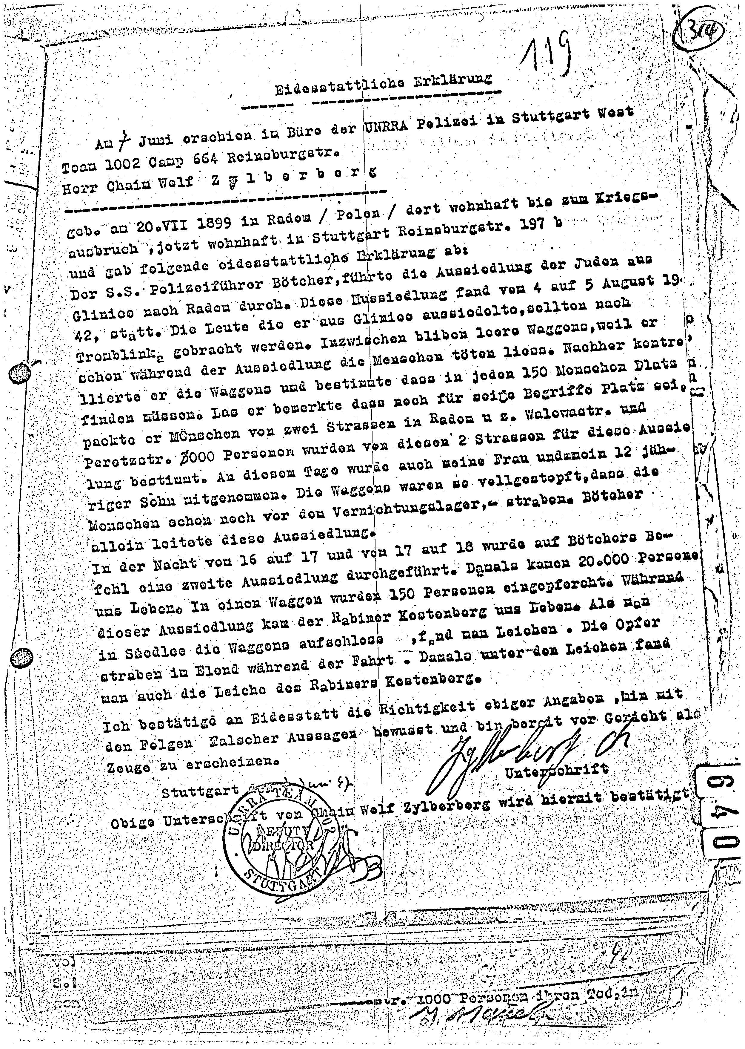 תיעוד משפטי בנוגע לפשעי מלחמה נאציים ובכלל זה עדויות ותצהירים של ניצולים ושל עדי ראייה מפולין, 1949-1946