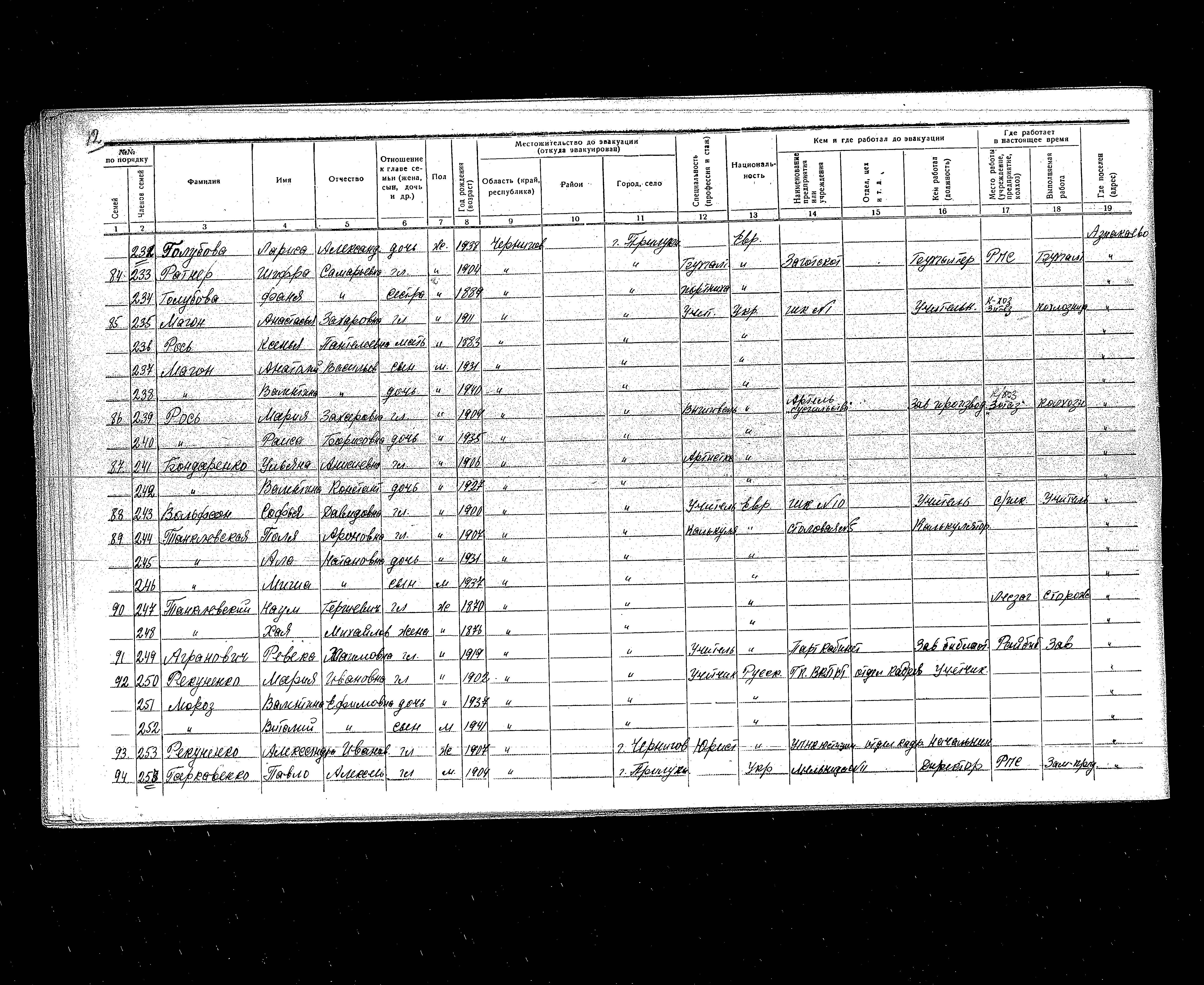 Agranovich Reveka 1919 Priluki, אוקראינה (ברה"מ) רשימת מפונים