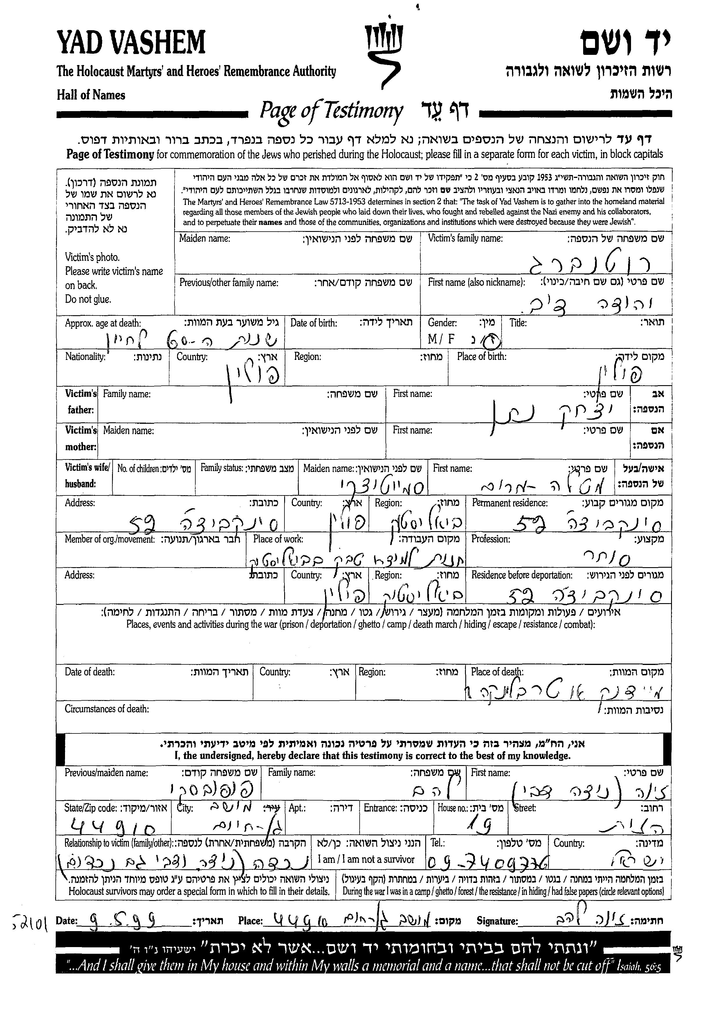 רוטנברג יהודה דוב Bialystok, פולין דף-עד