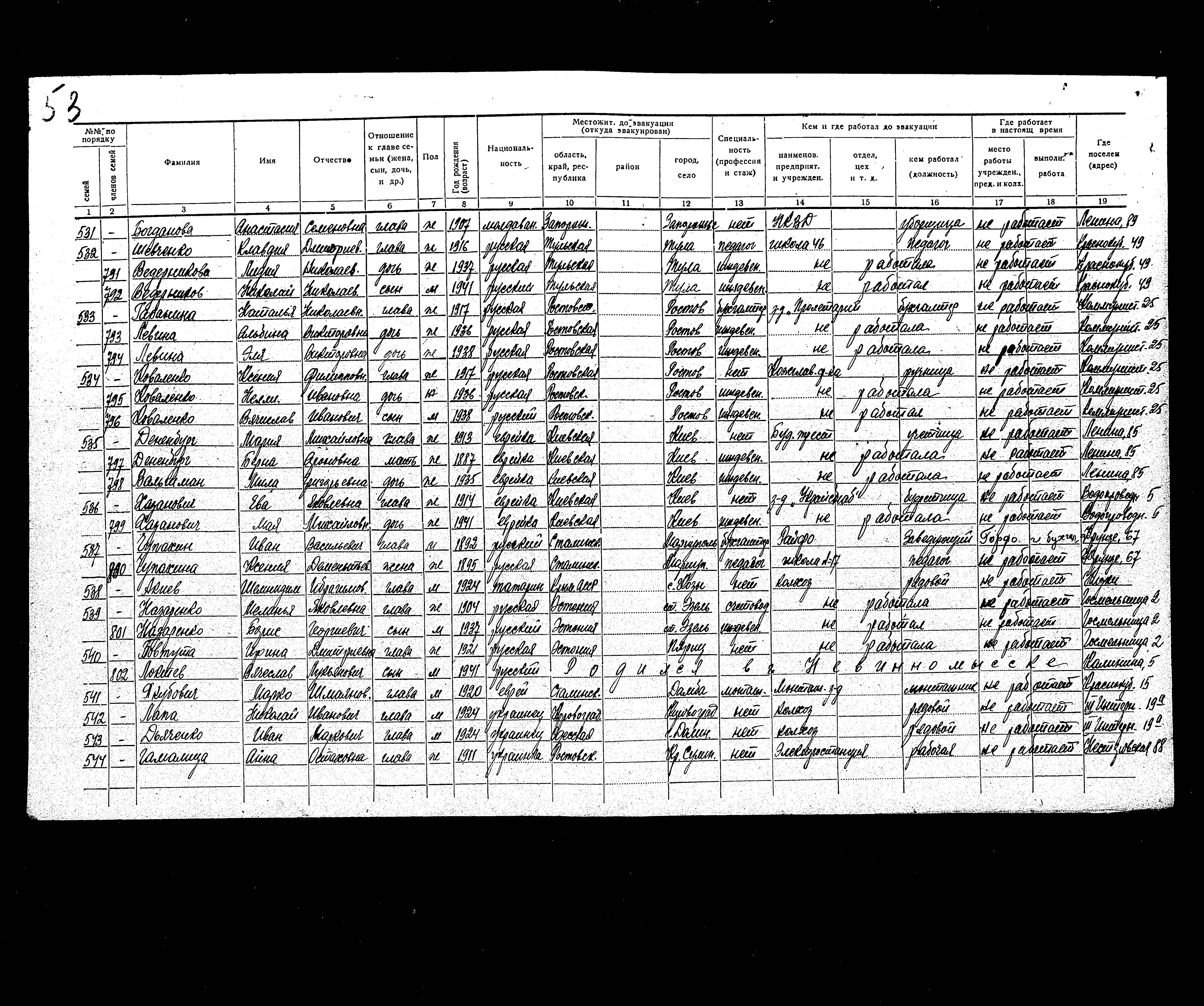Denenburg Berna 1887 Kiev, אוקראינה (ברה"מ) רשימת מפונים