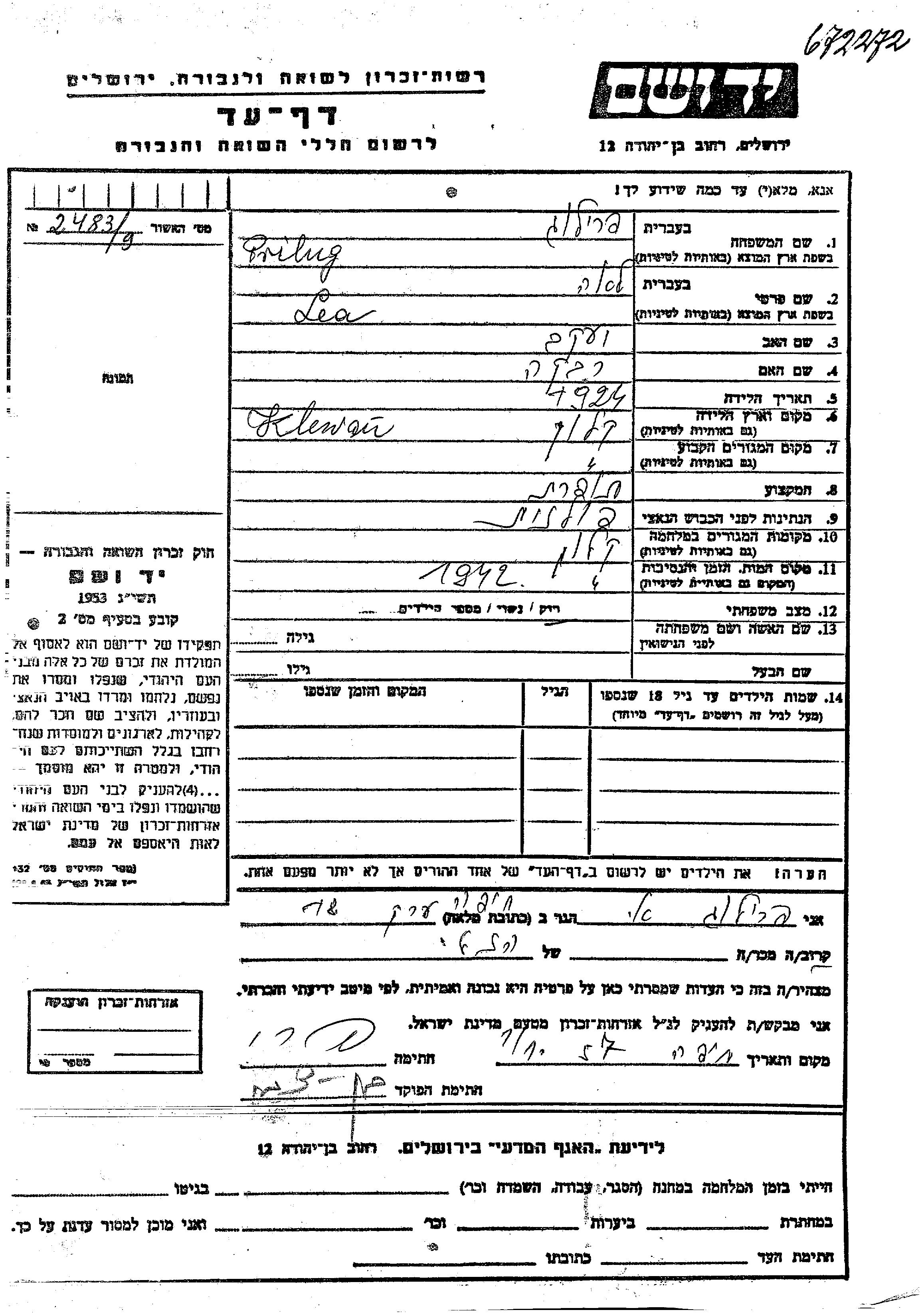 חיפוש שם מוסר דף העד. חיפוש לפי כל שם פרטי, כולל כינוי או שם חיבה
