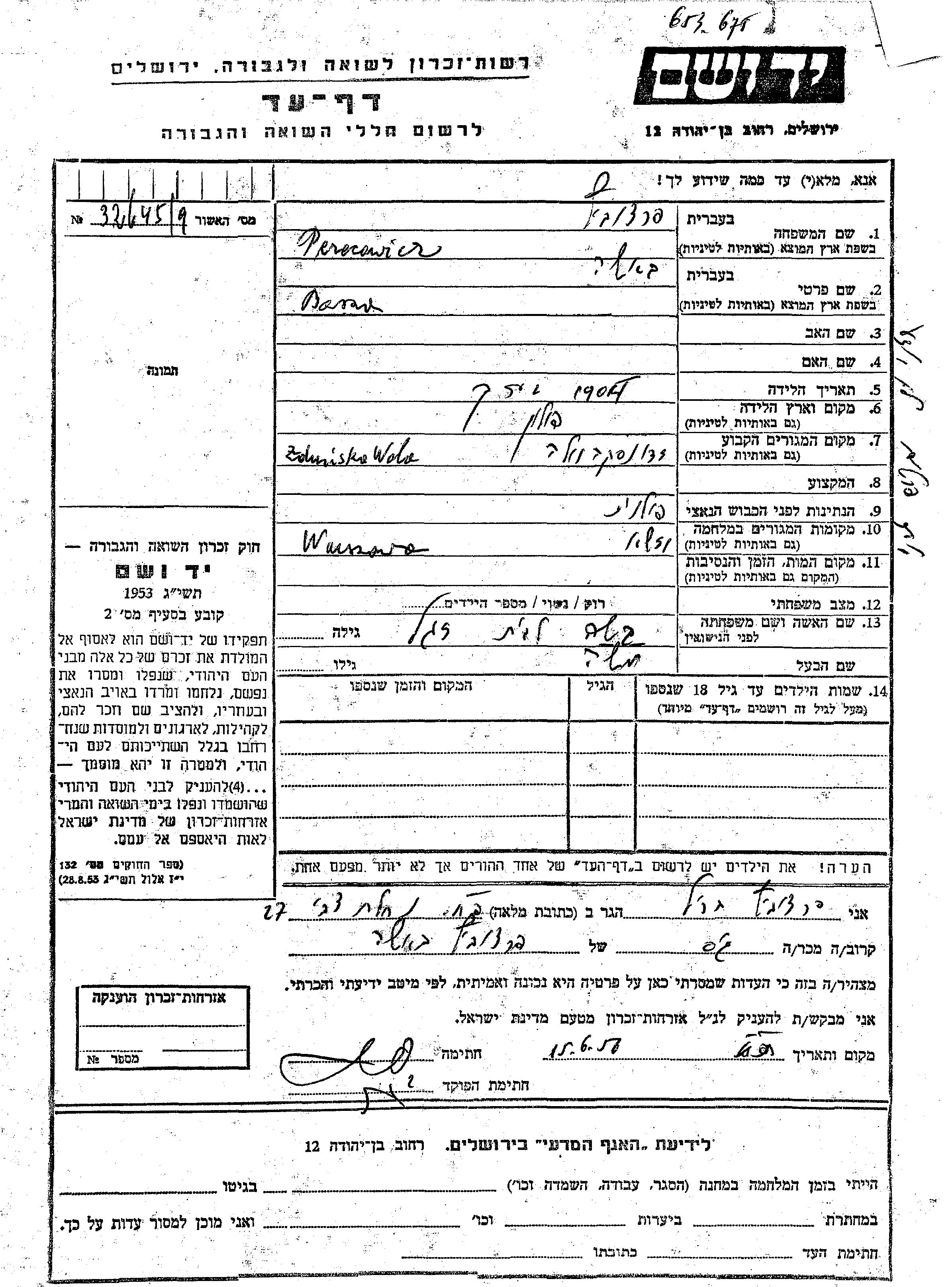 יד ושם - המפעל להנצחת השמות בדפי עד