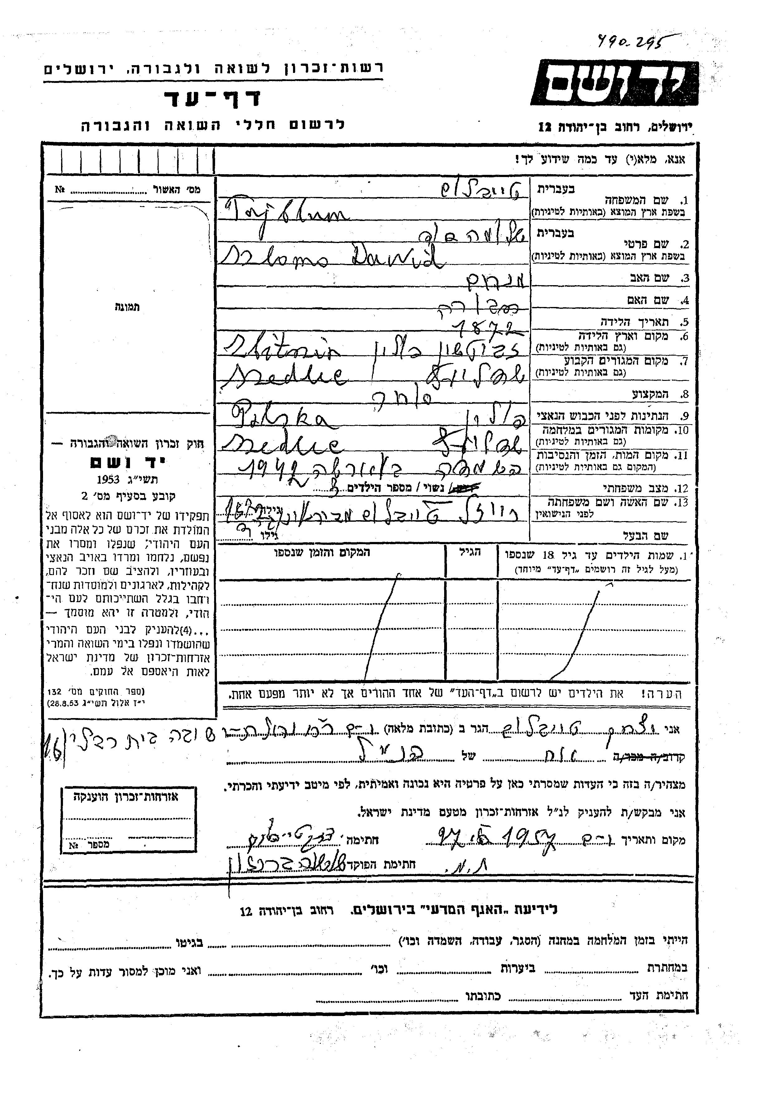 יד ושם - המפעל להנצחת השמות בדפי עד