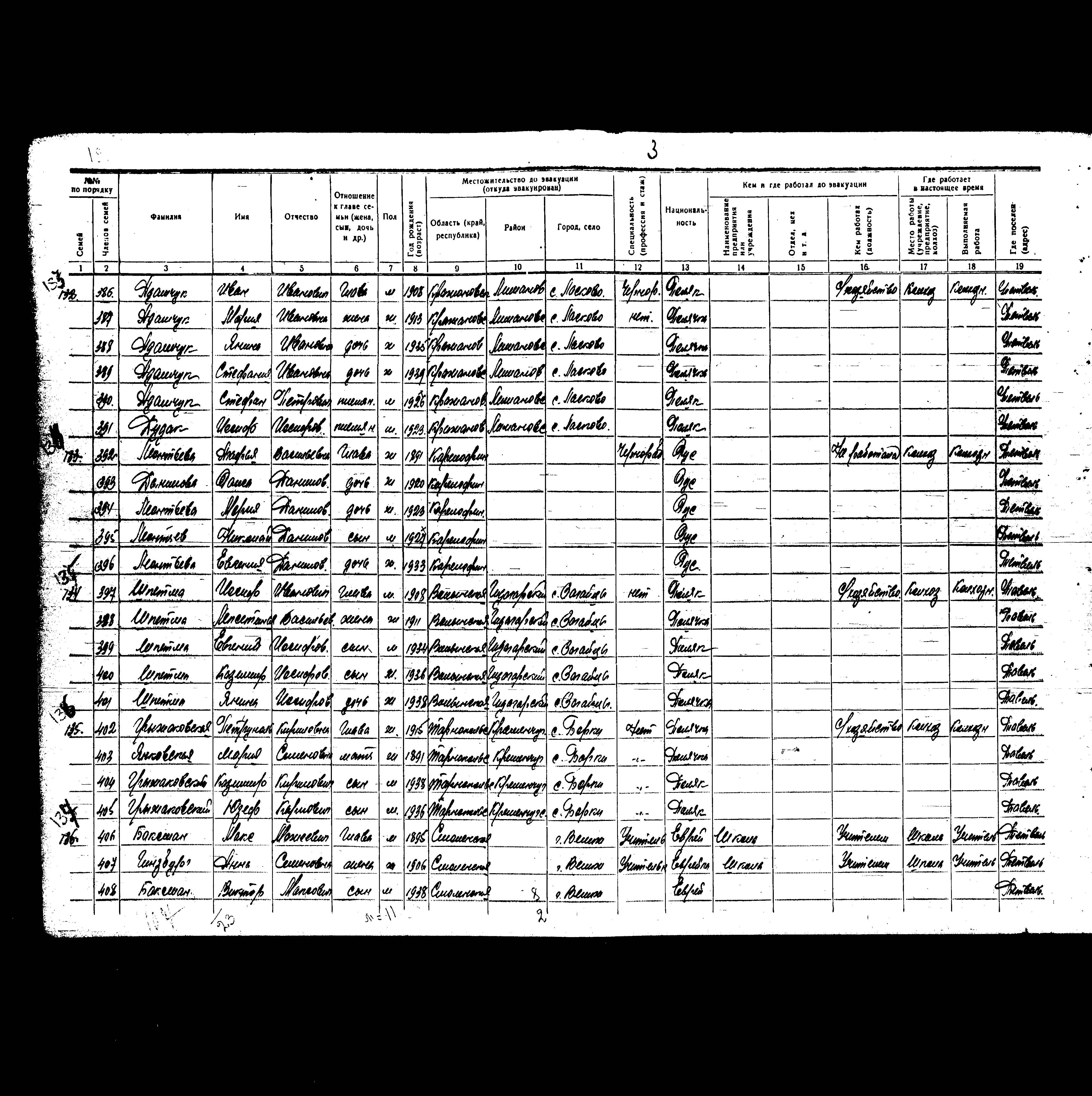 Baksman Viktor 1938 Velizh, רוסיה (ברה"מ) רשימת מפונים
