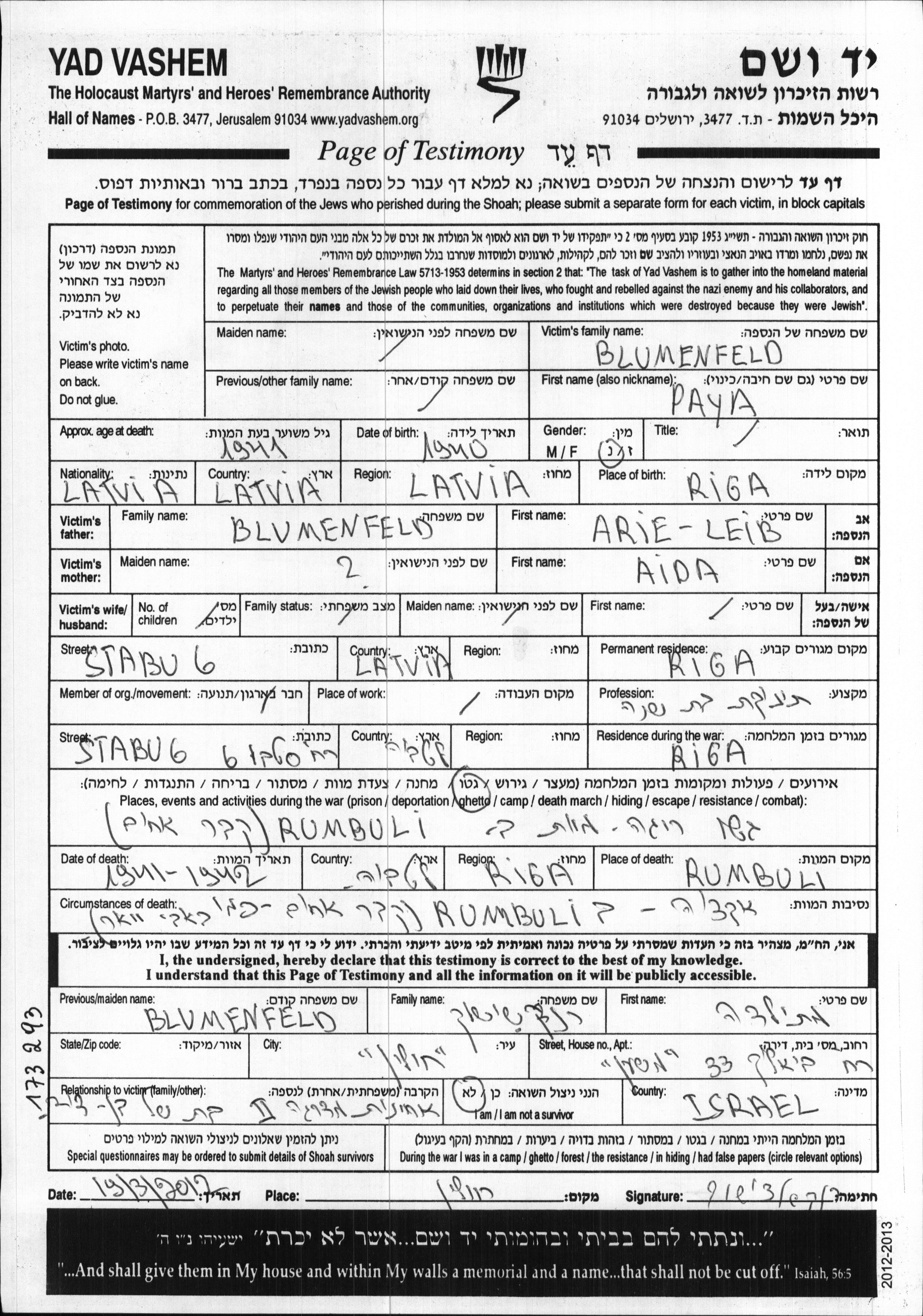 בלומנפלד Paya 1940 Riga, לטביה דף-עד