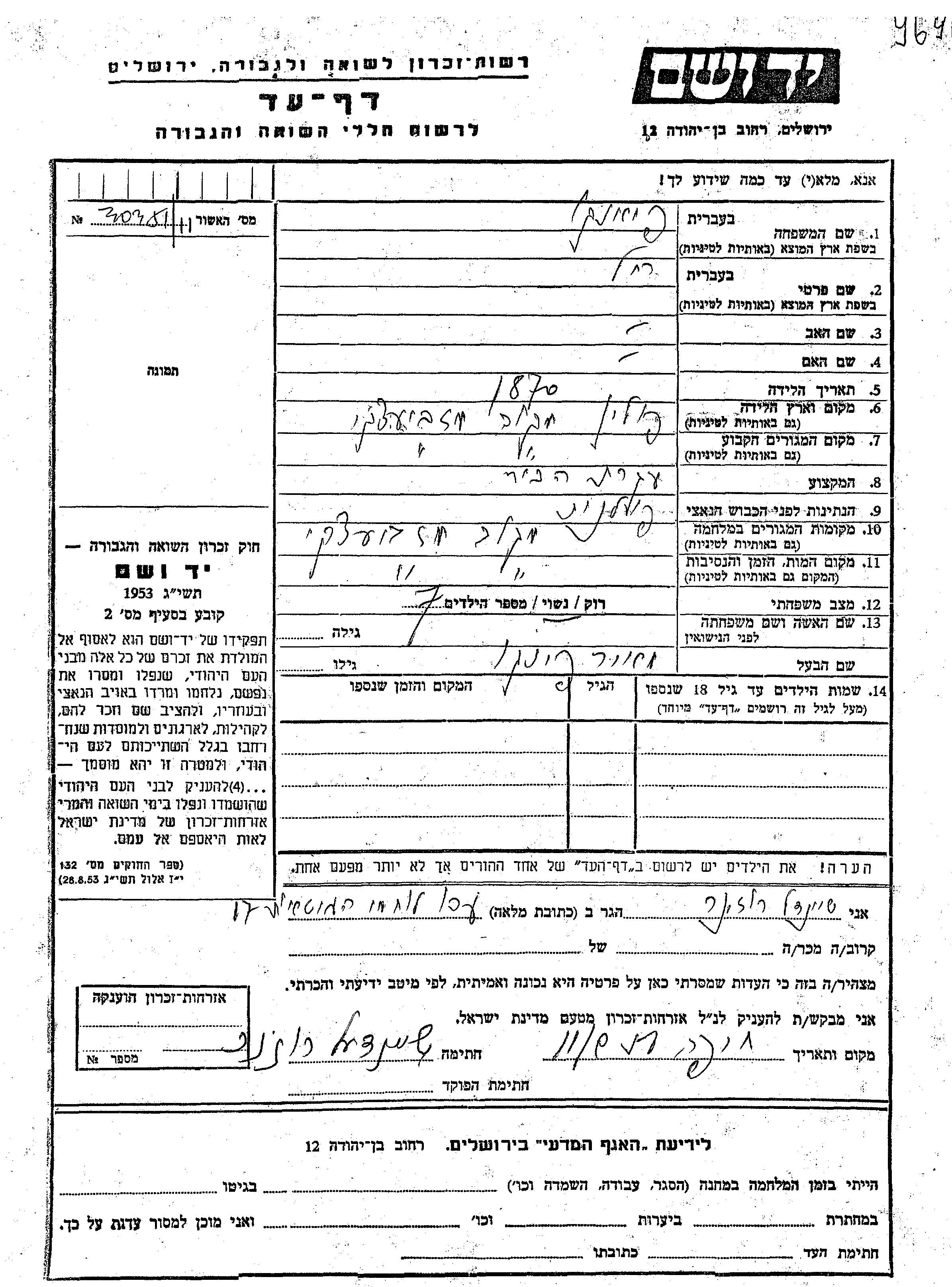 יד ושם - המפעל להנצחת השמות בדפי עד