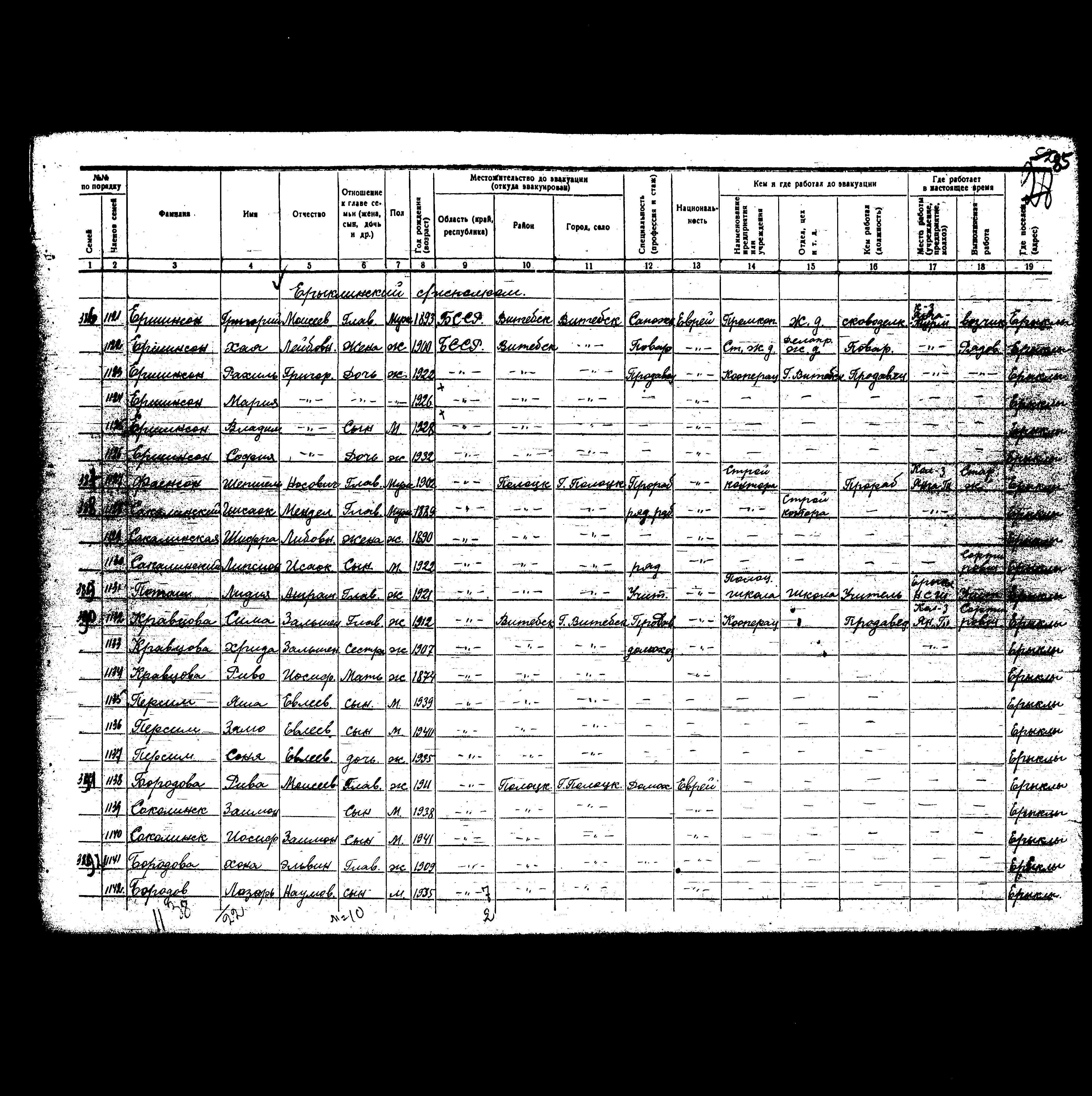 Fayenson Shepshel 1902 Polotsk, ביאלורוסיה (ברה"מ) רשימת מפונים