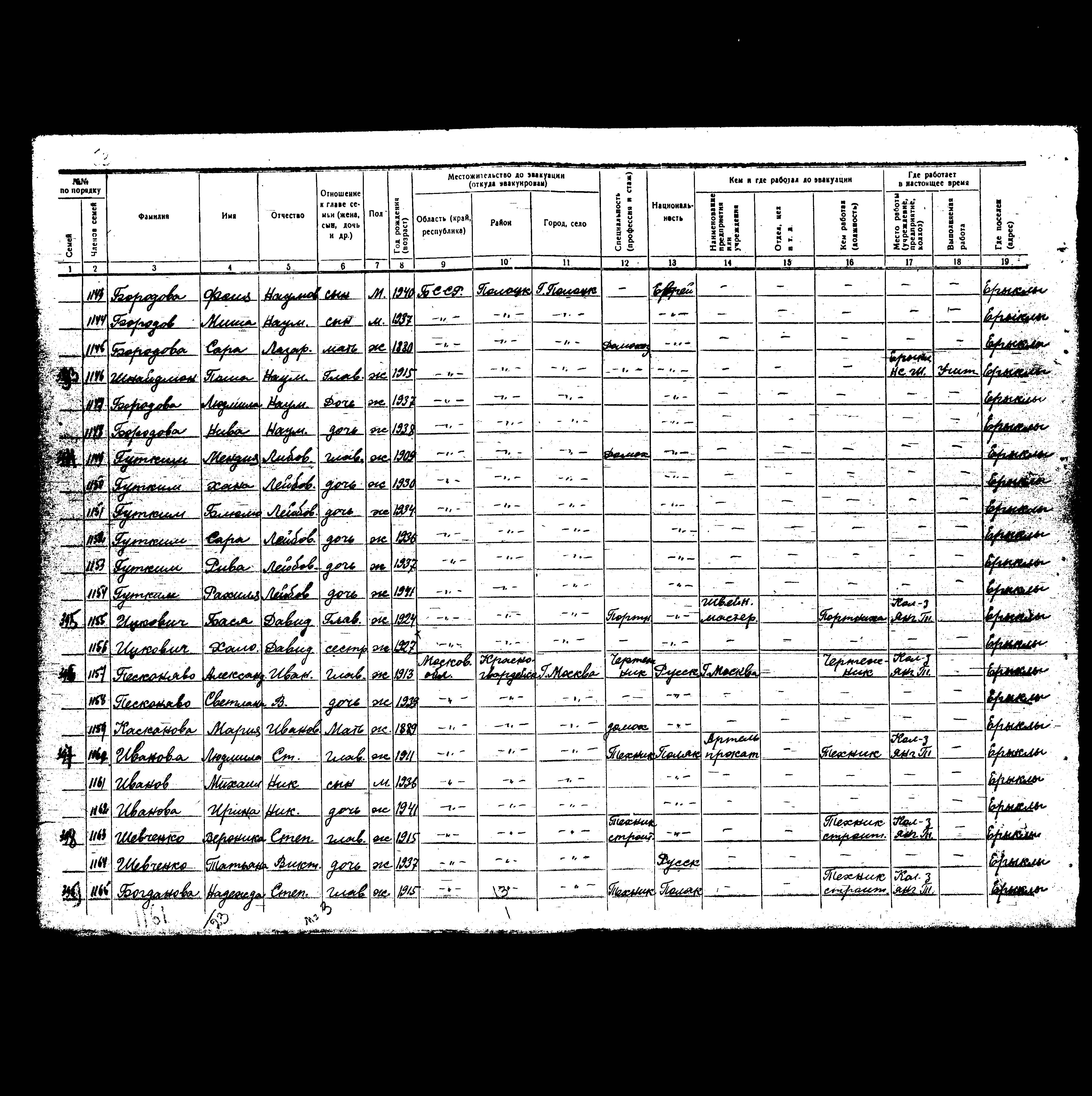 Borodova Lyudmila 1937 Polotsk, ביאלורוסיה (ברה"מ) רשימת מפונים