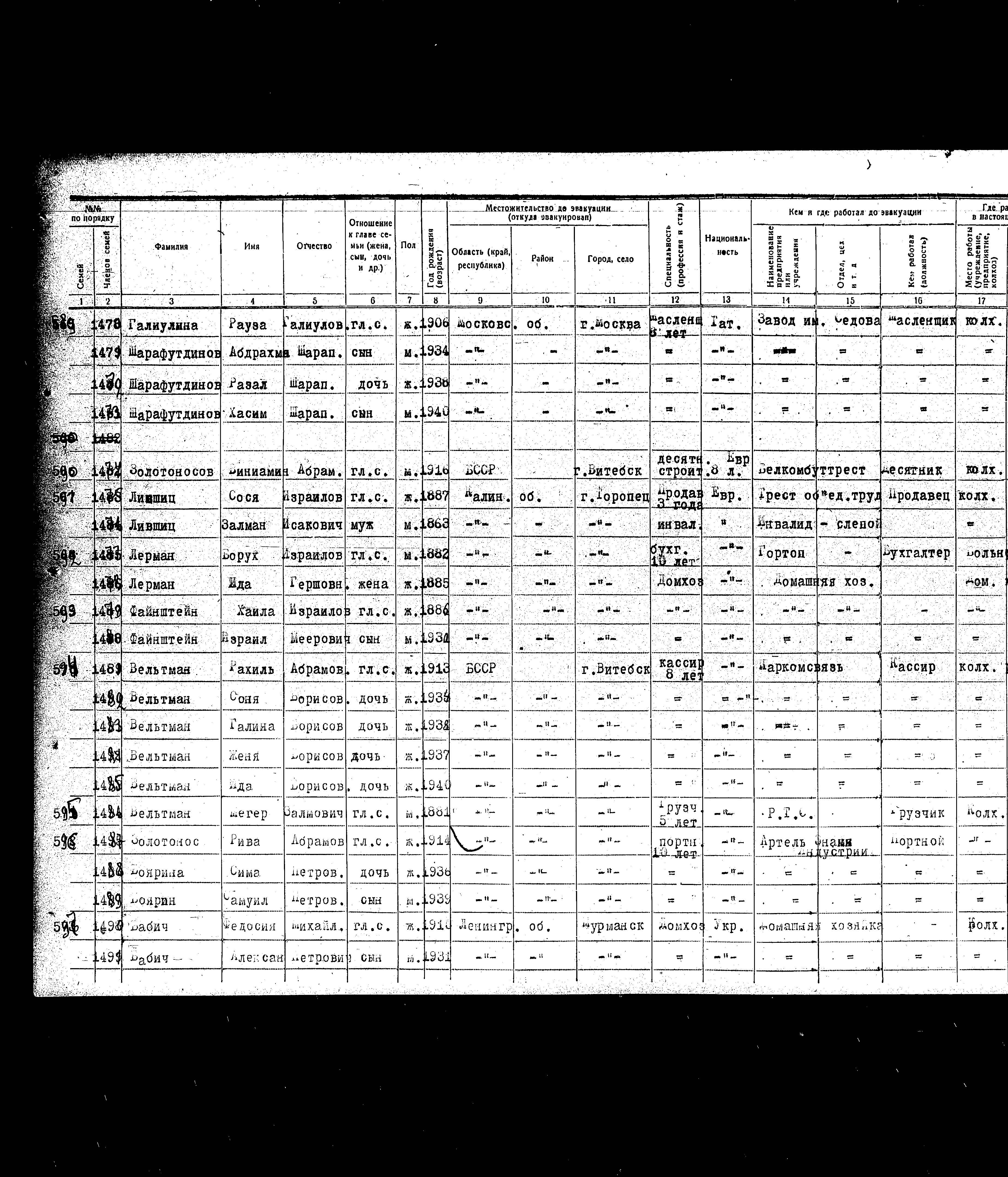 Faynshteyn Khaila 1886 Toropets, רוסיה (ברה"מ) רשימת מפונים