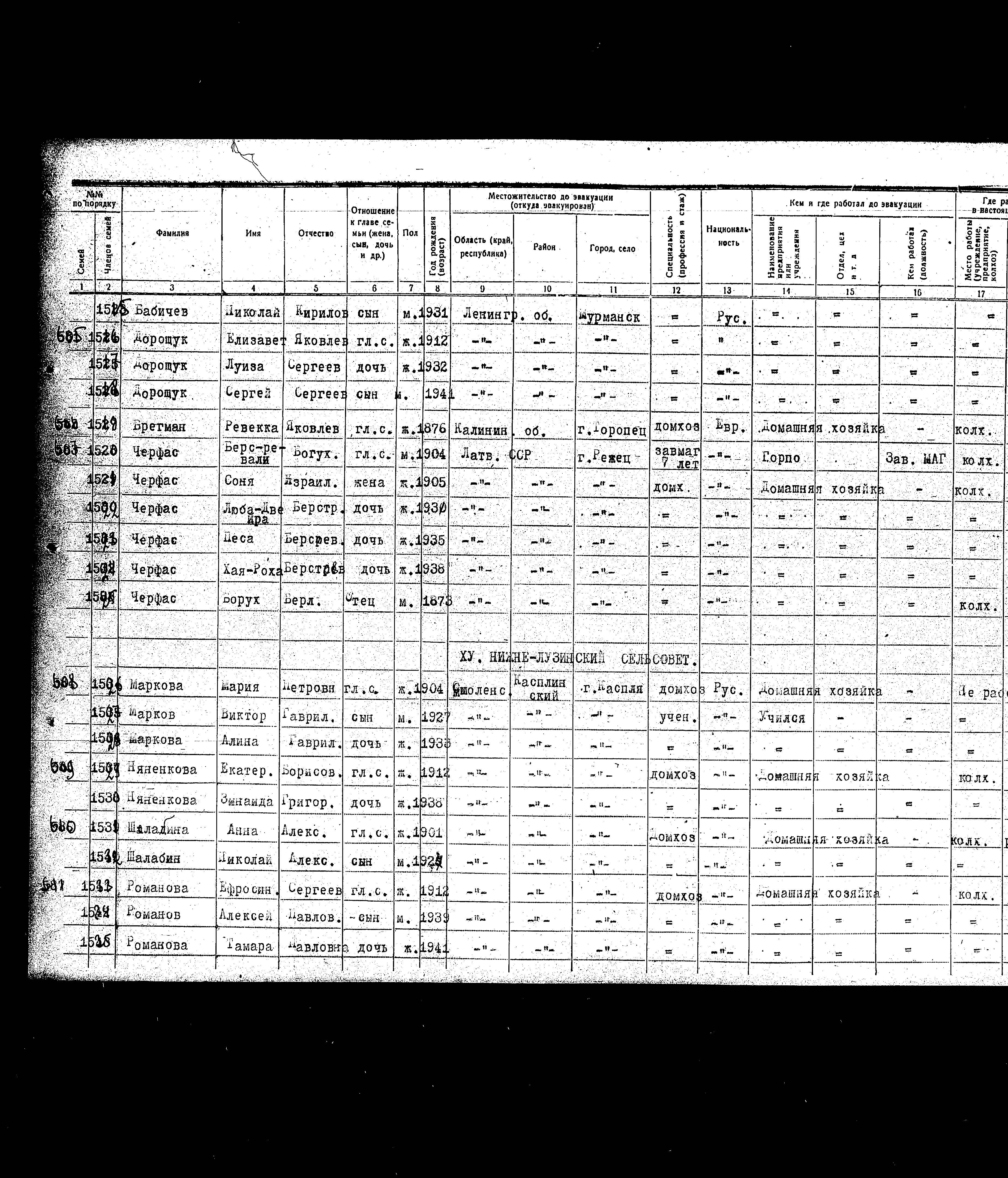 Cherfas Bers Revali 1904 Rezhitsa, לטביה רשימת מפונים