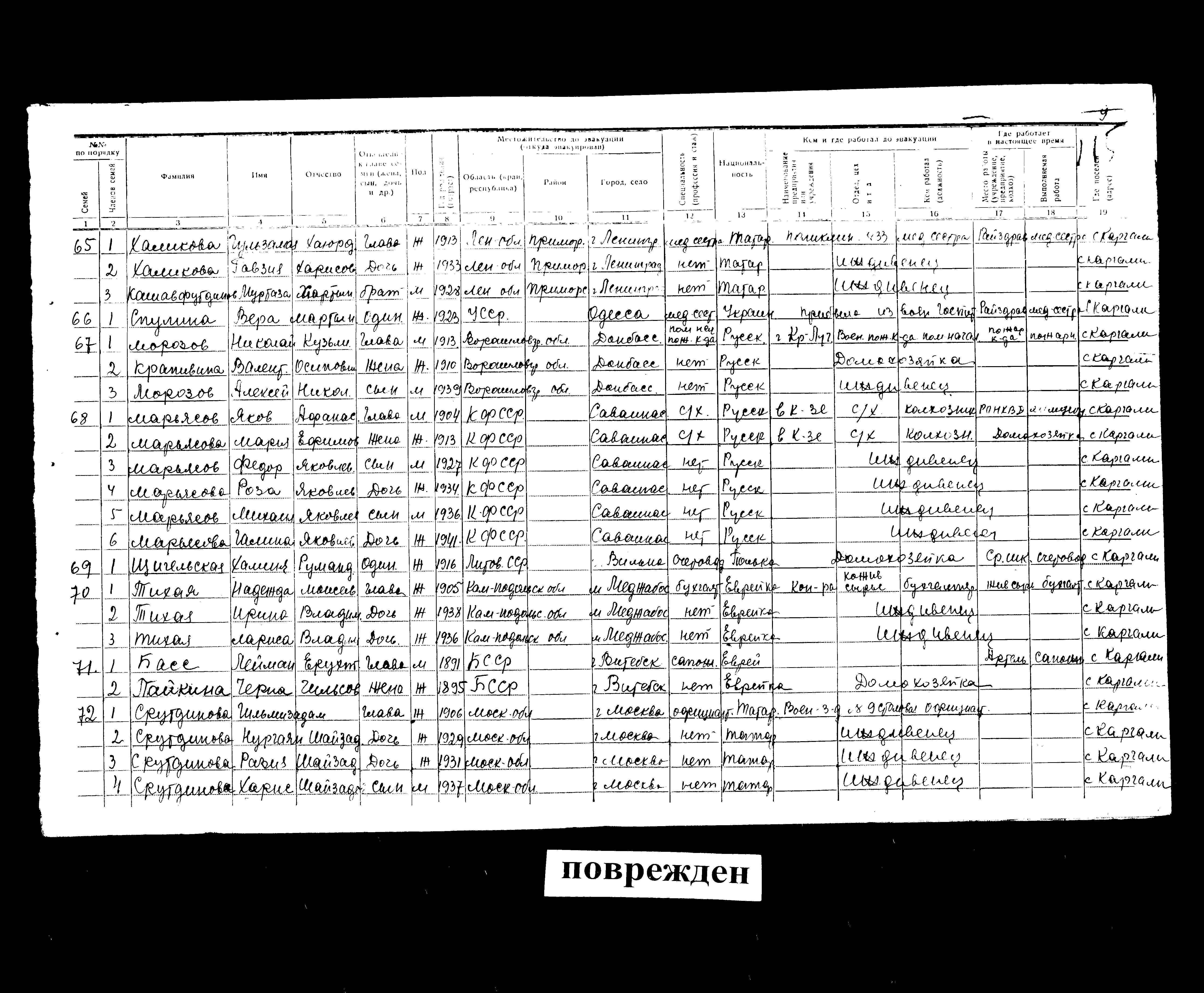 היא נרשם/ה בעקבות הפינוי\ באזורים הפניים של ברית המועצות.