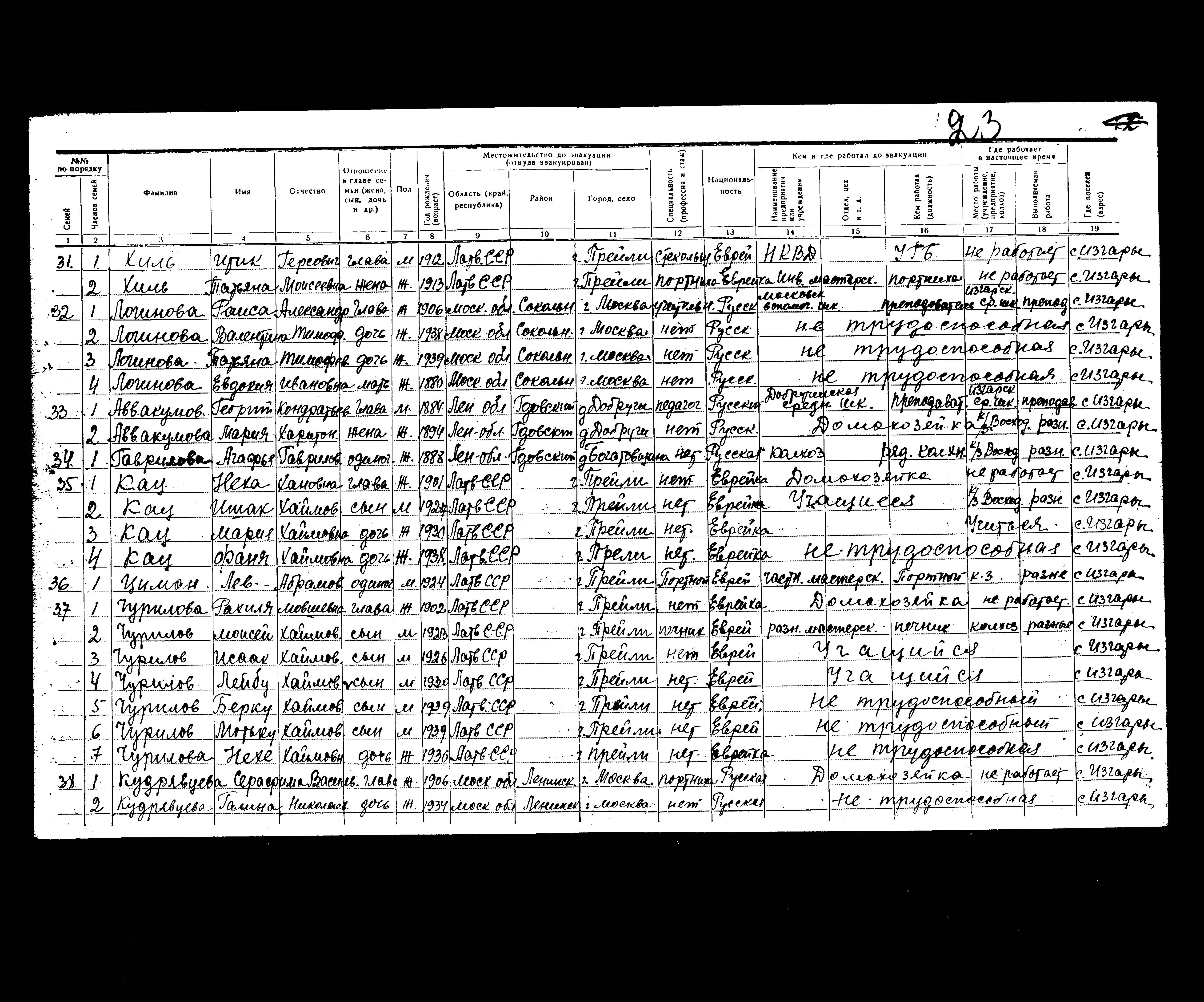 Churilova Rakhilya 1902 Preyli, לטביה רשימת מפונים