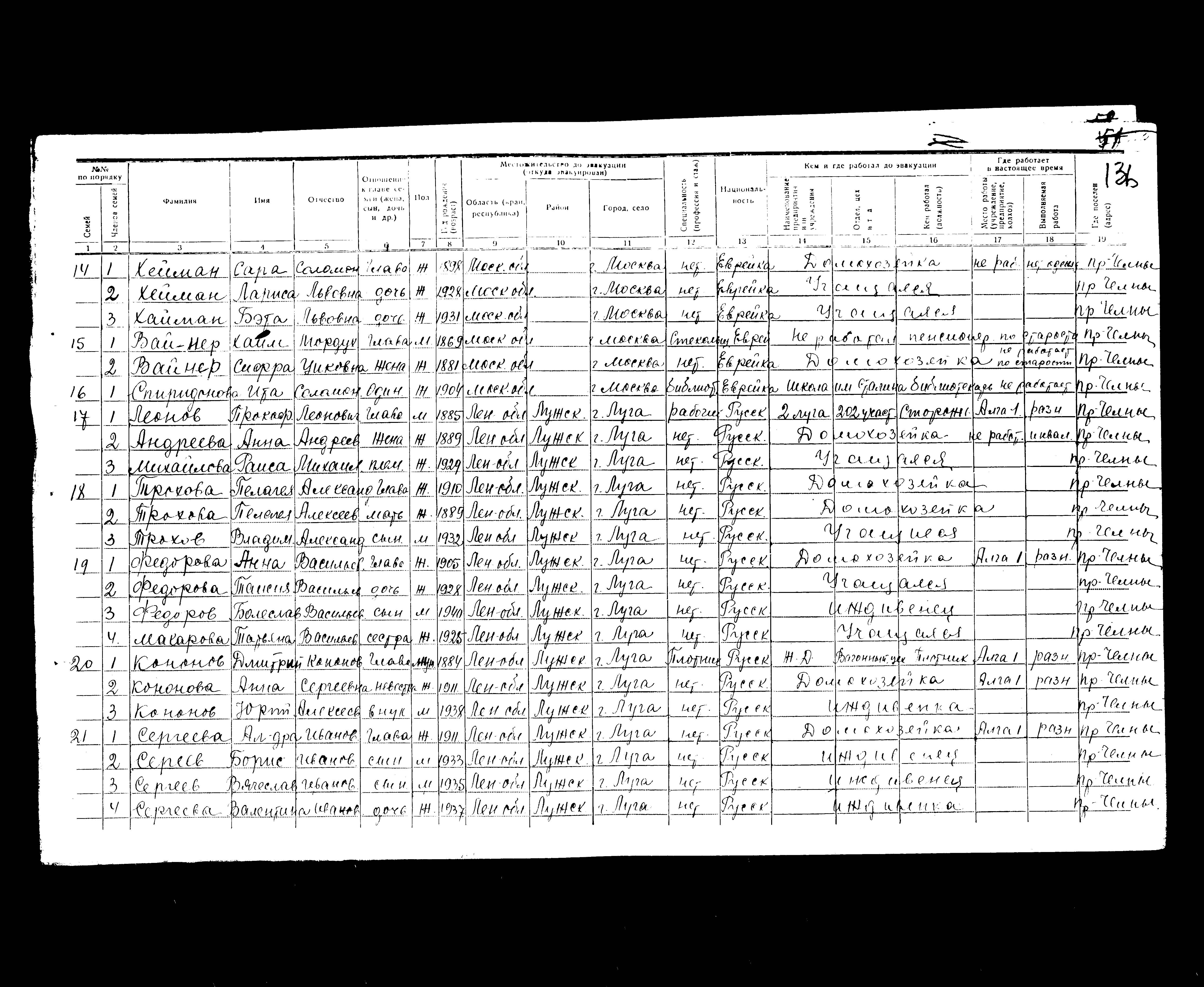 Kheyman לריסה 1928 Moskva, רוסיה (ברה"מ) רשימת מפונים