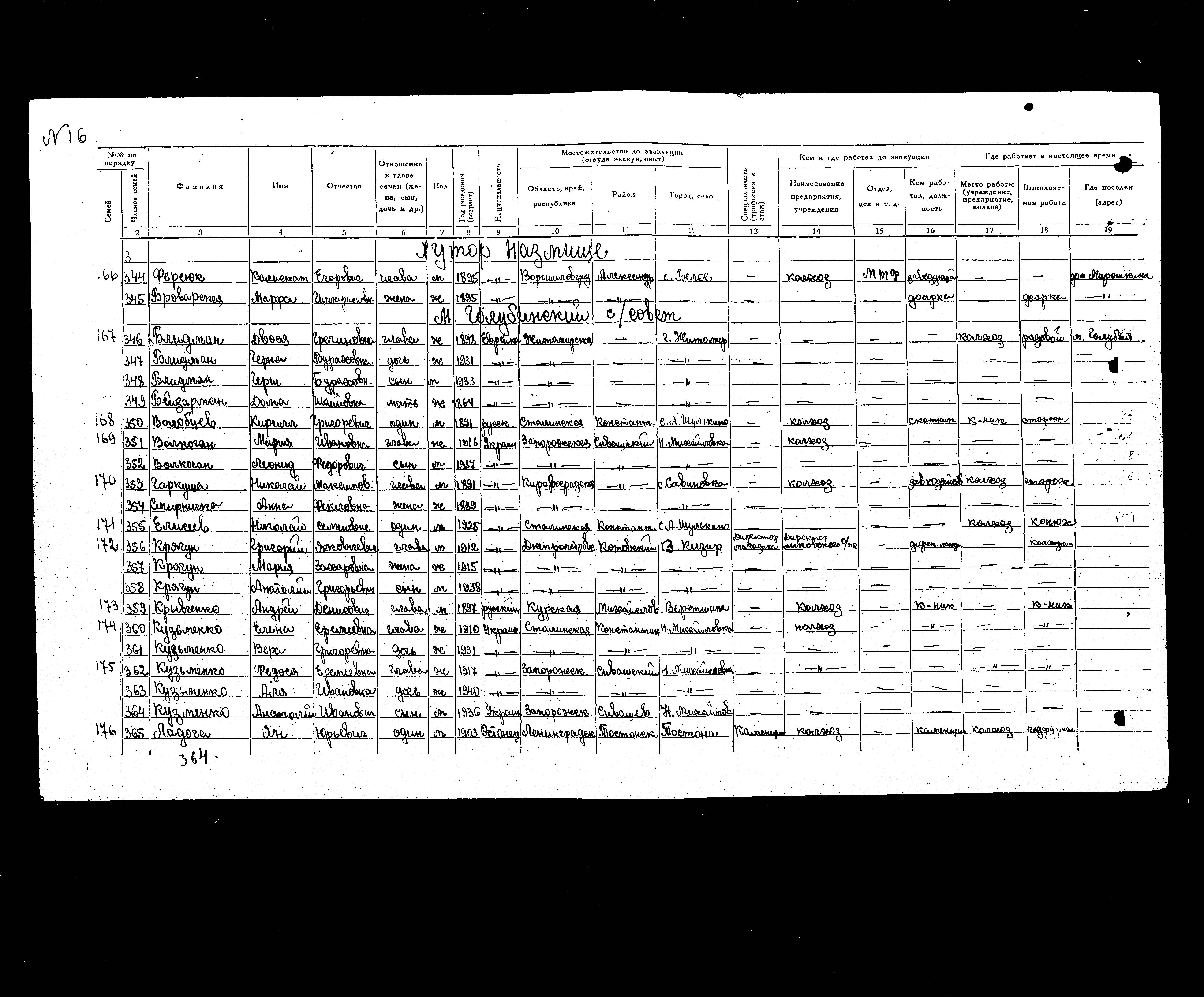 Beyzerman Doma 1864 Zhitomir, אוקראינה (ברה"מ) רשימת מפונים