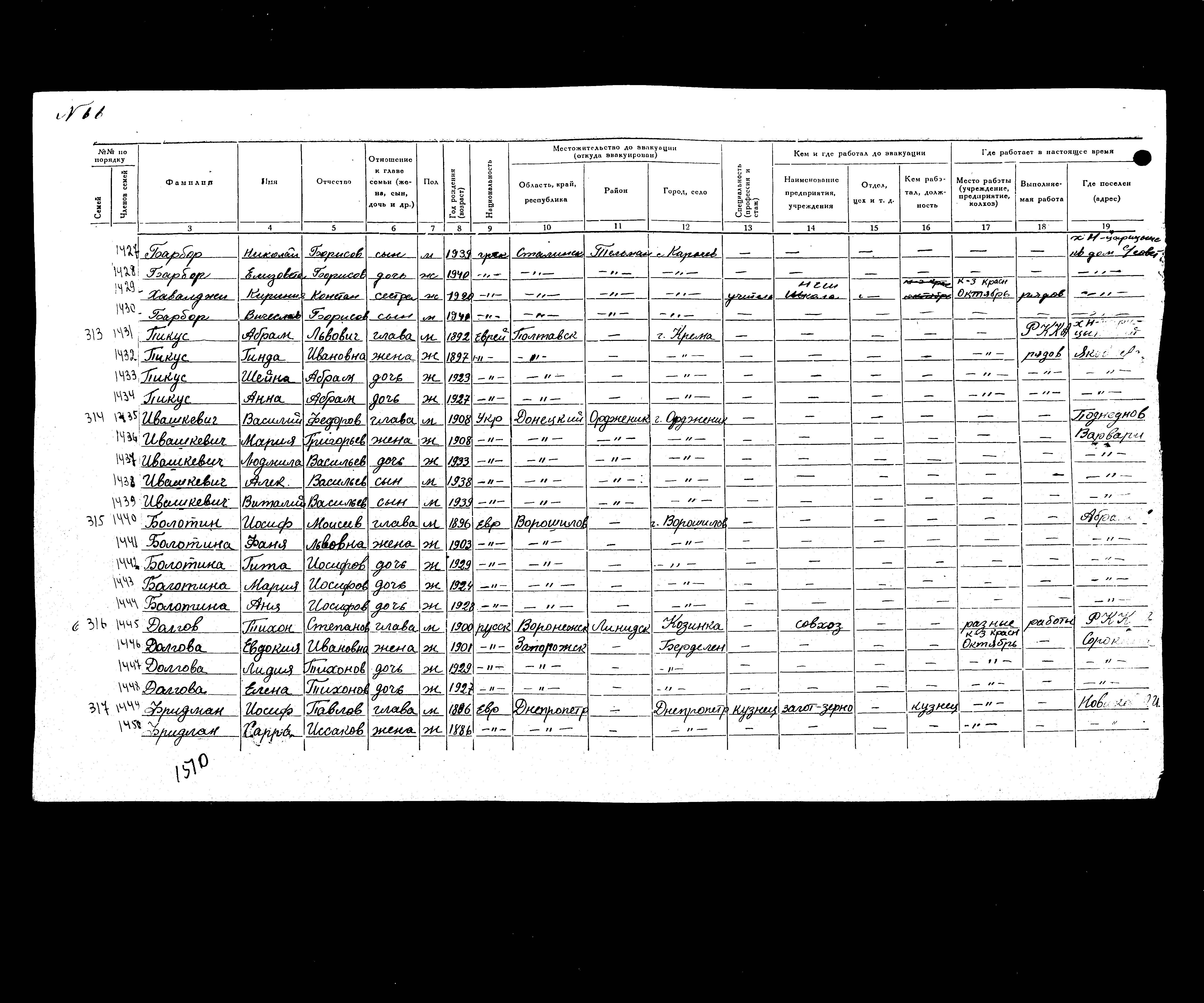 Bolotina Anya 1928 Voroshilov, ברית המועצות רשימת מפונים