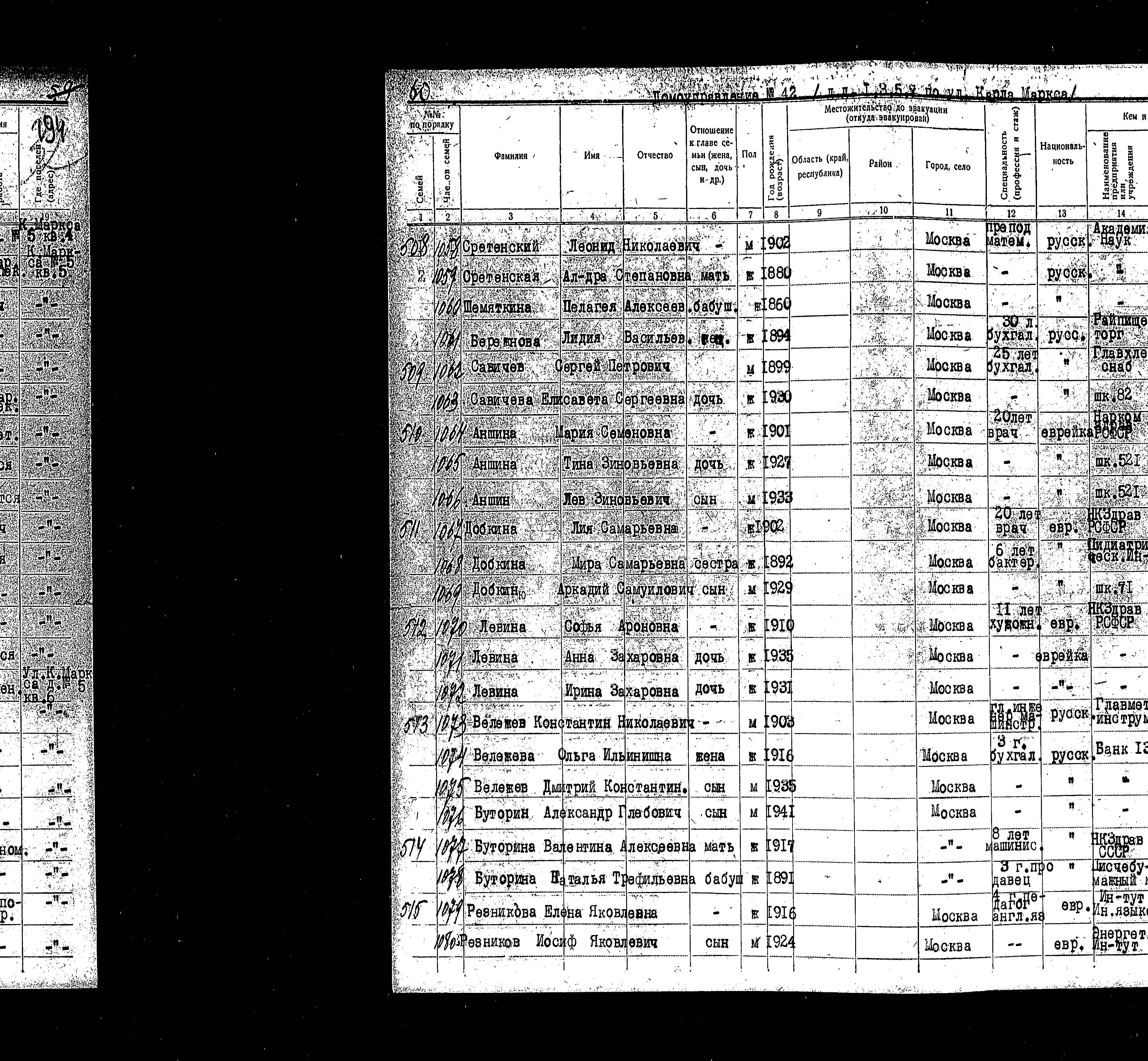 Anshina מריה 1901 Moskva, רוסיה (ברה"מ) רשימת מפונים
