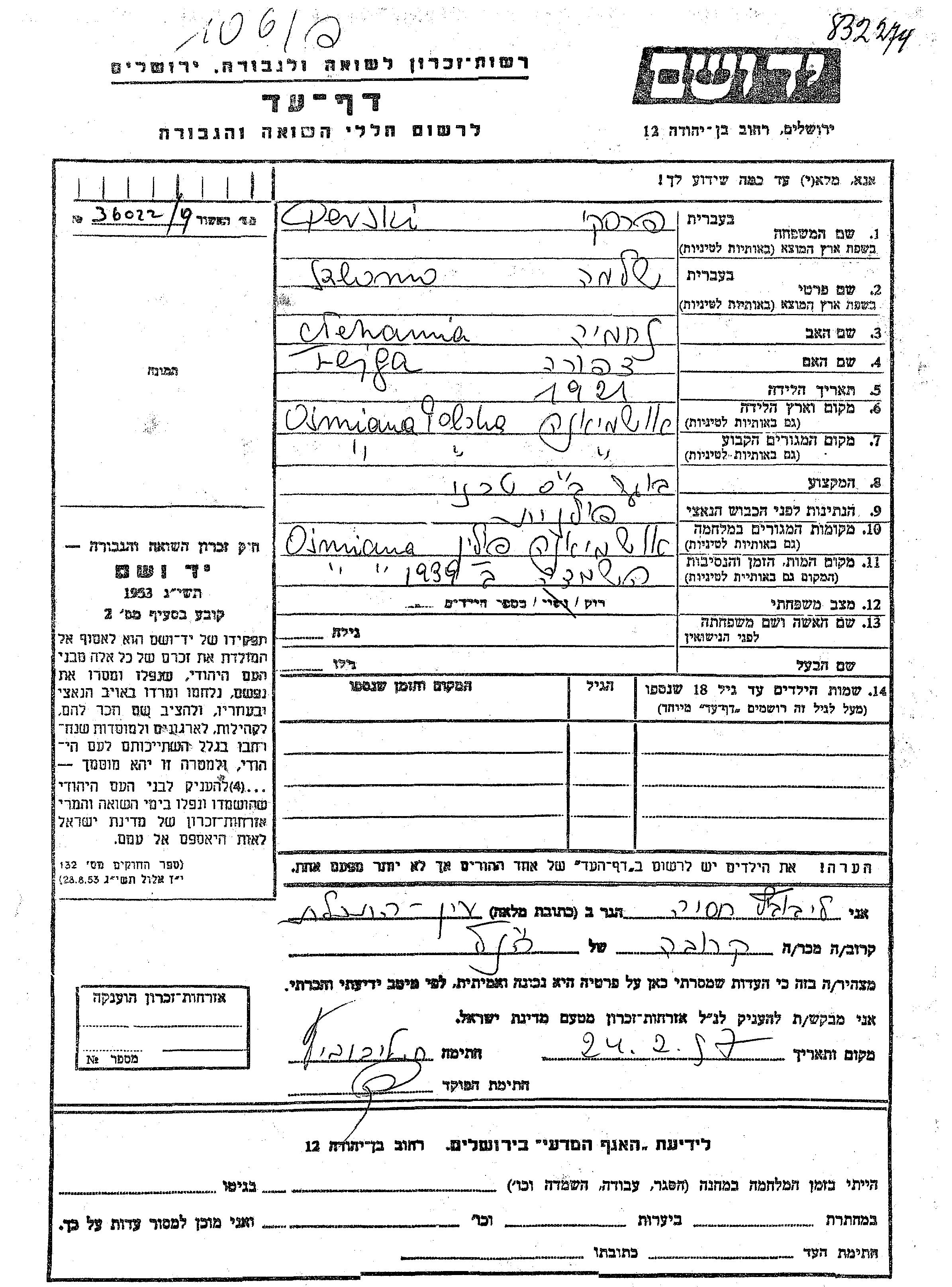 יד ושם - המפעל להנצחת השמות בדפי עד