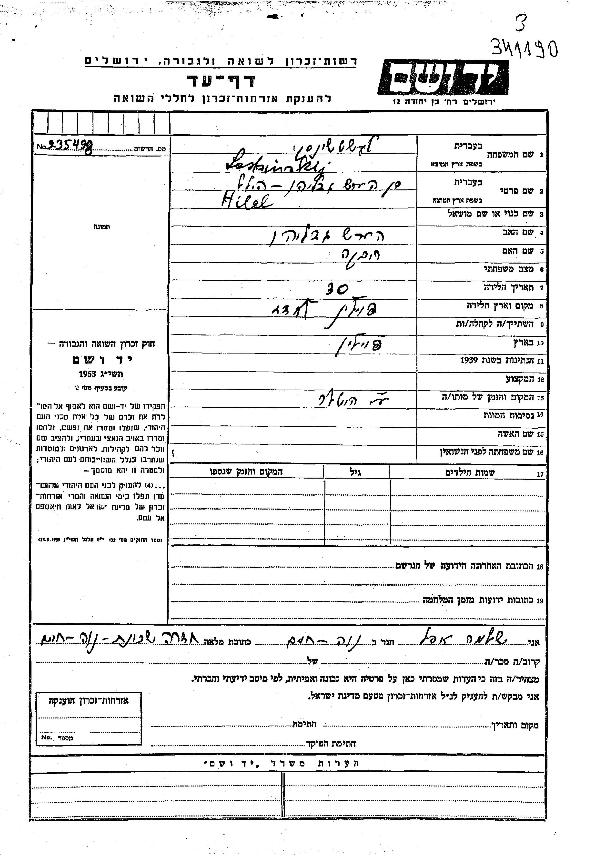 יד ושם - המפעל להנצחת השמות בדפי עד