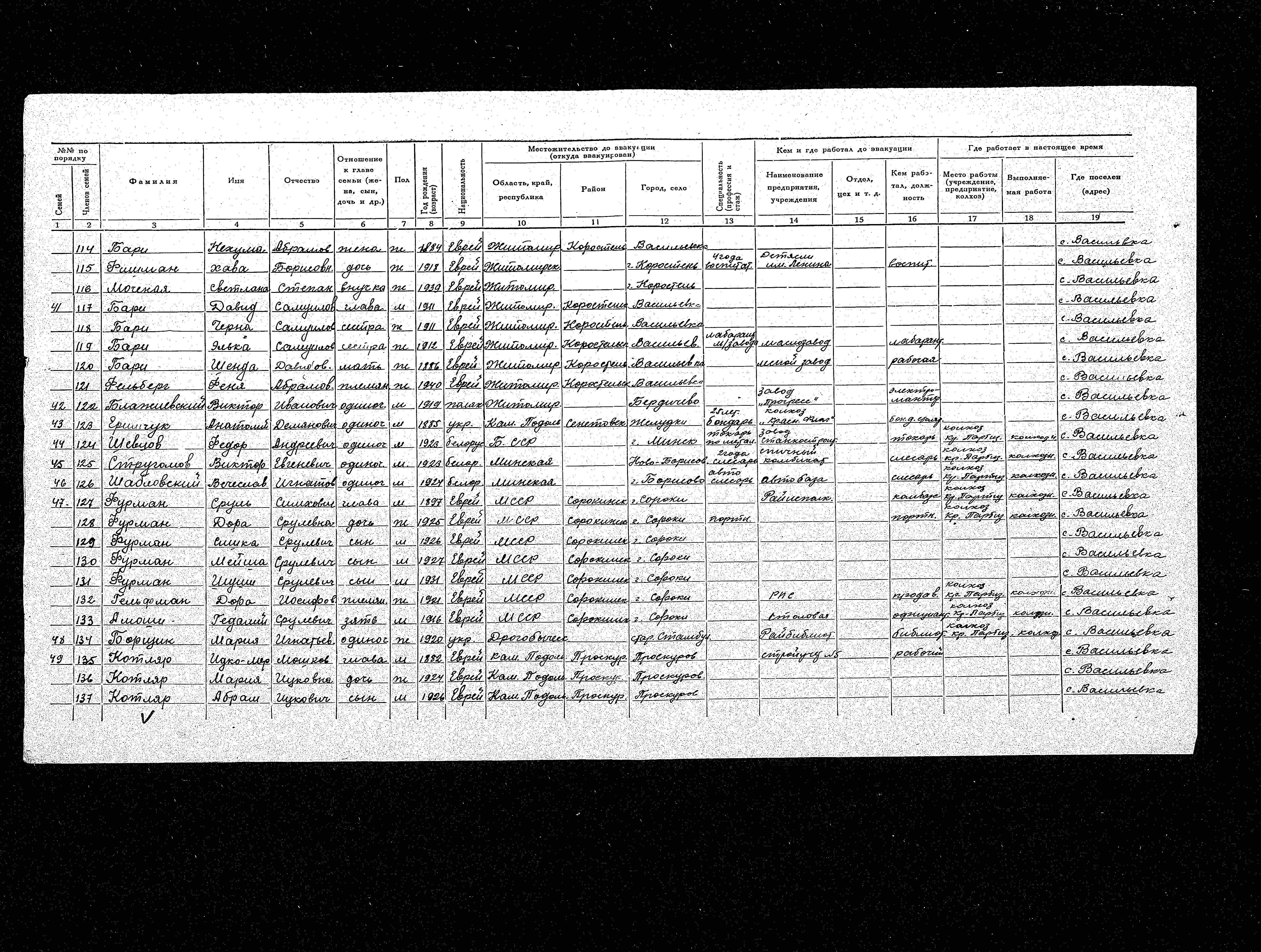 נרשם/ה בעקבות הפינוי\ באזורים הפניים של ברית המועצות