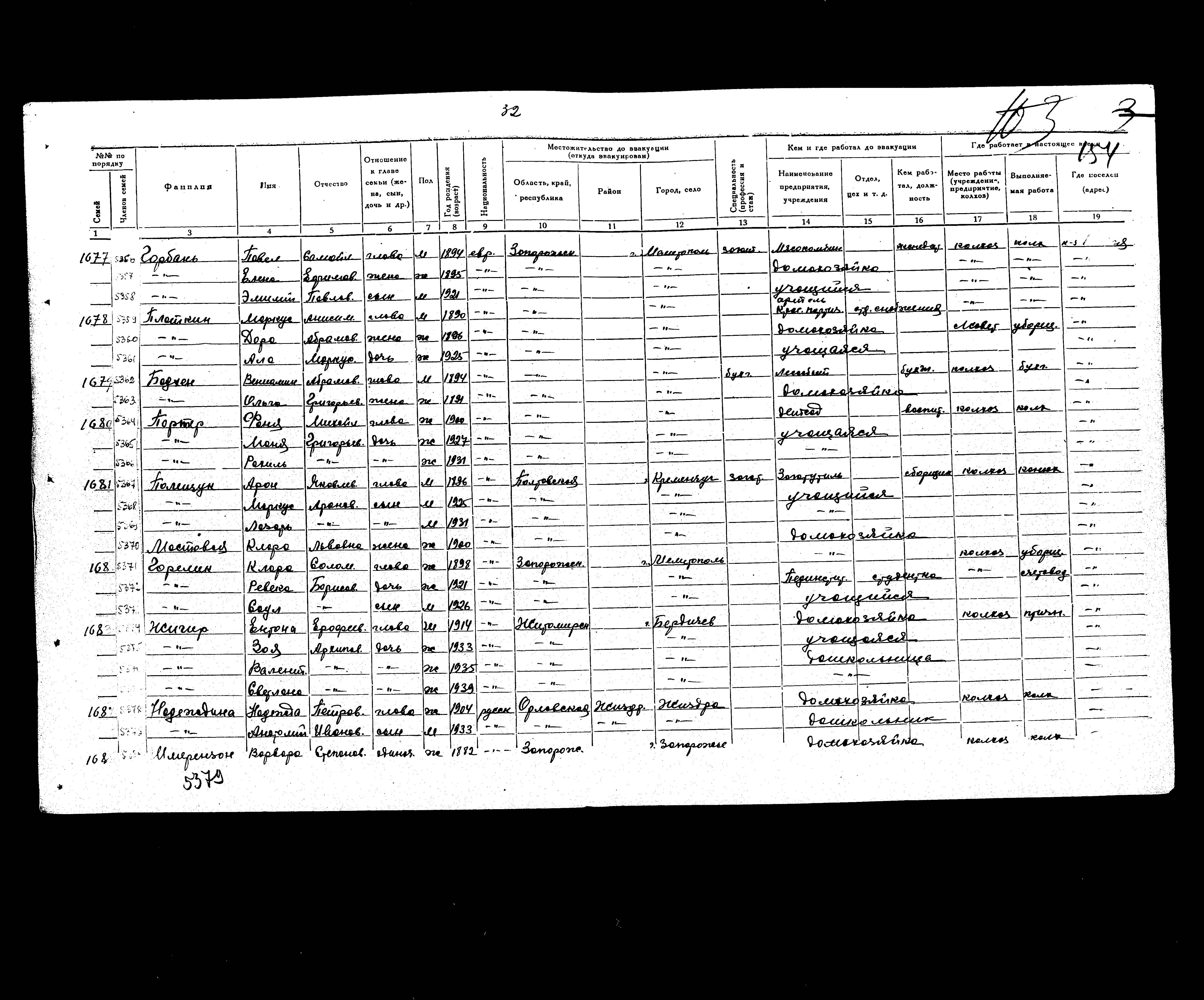 Badkhen Olga 1891 Melitopol, אוקראינה (ברה"מ) רשימת מפונים