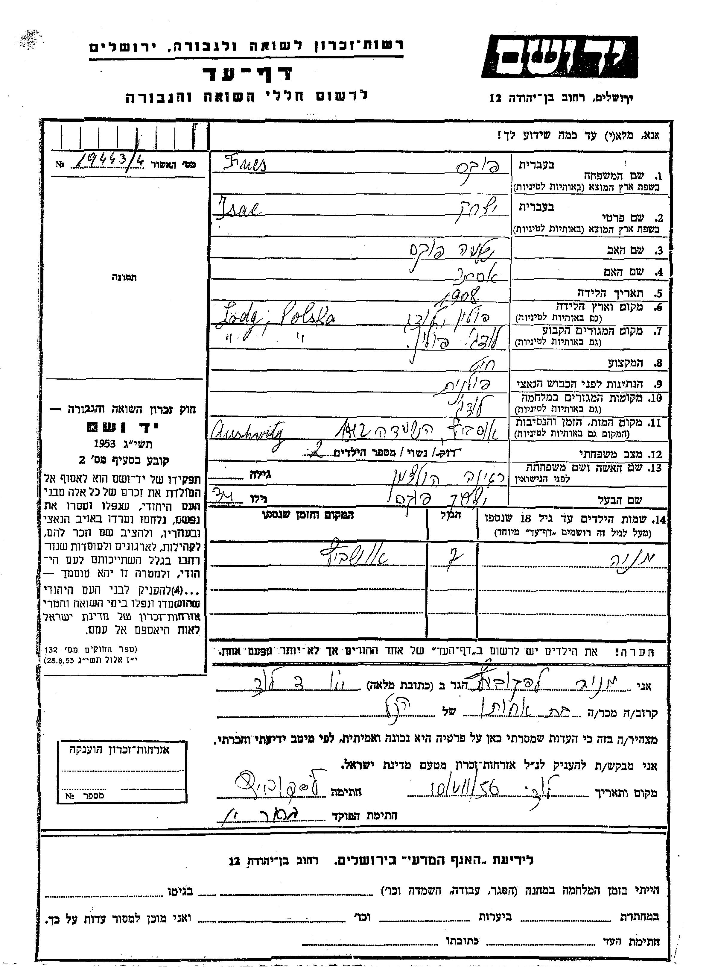 יד ושם - המפעל להנצחת השמות בדפי עד