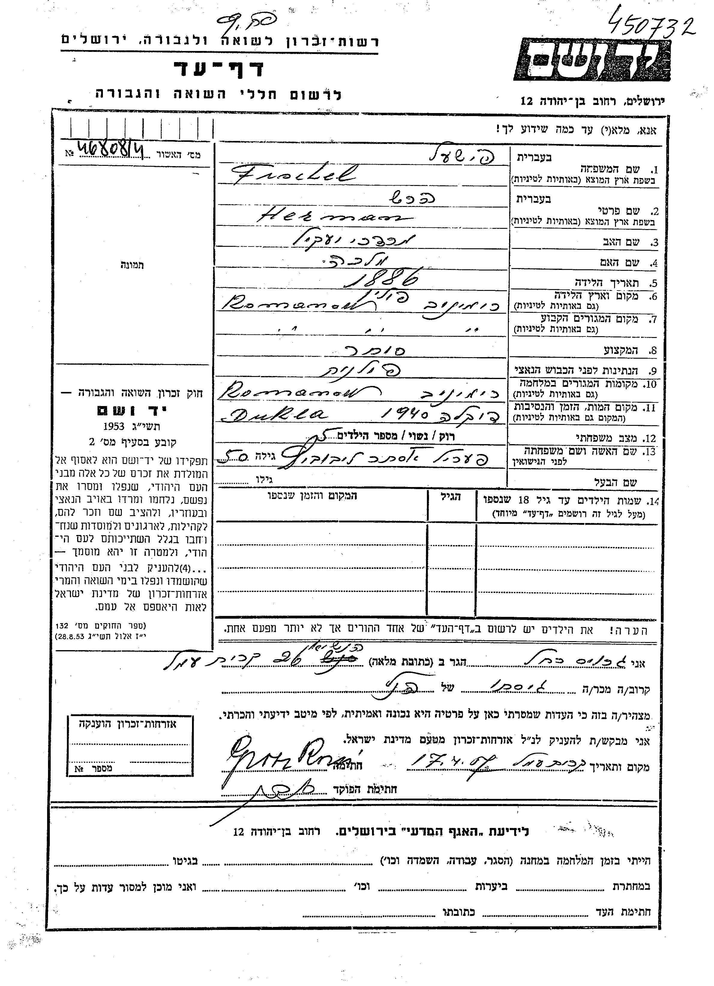 הרש הרמן נרצח בשואה. מקום המוות: Dukla שבפולין בשנת 1940.