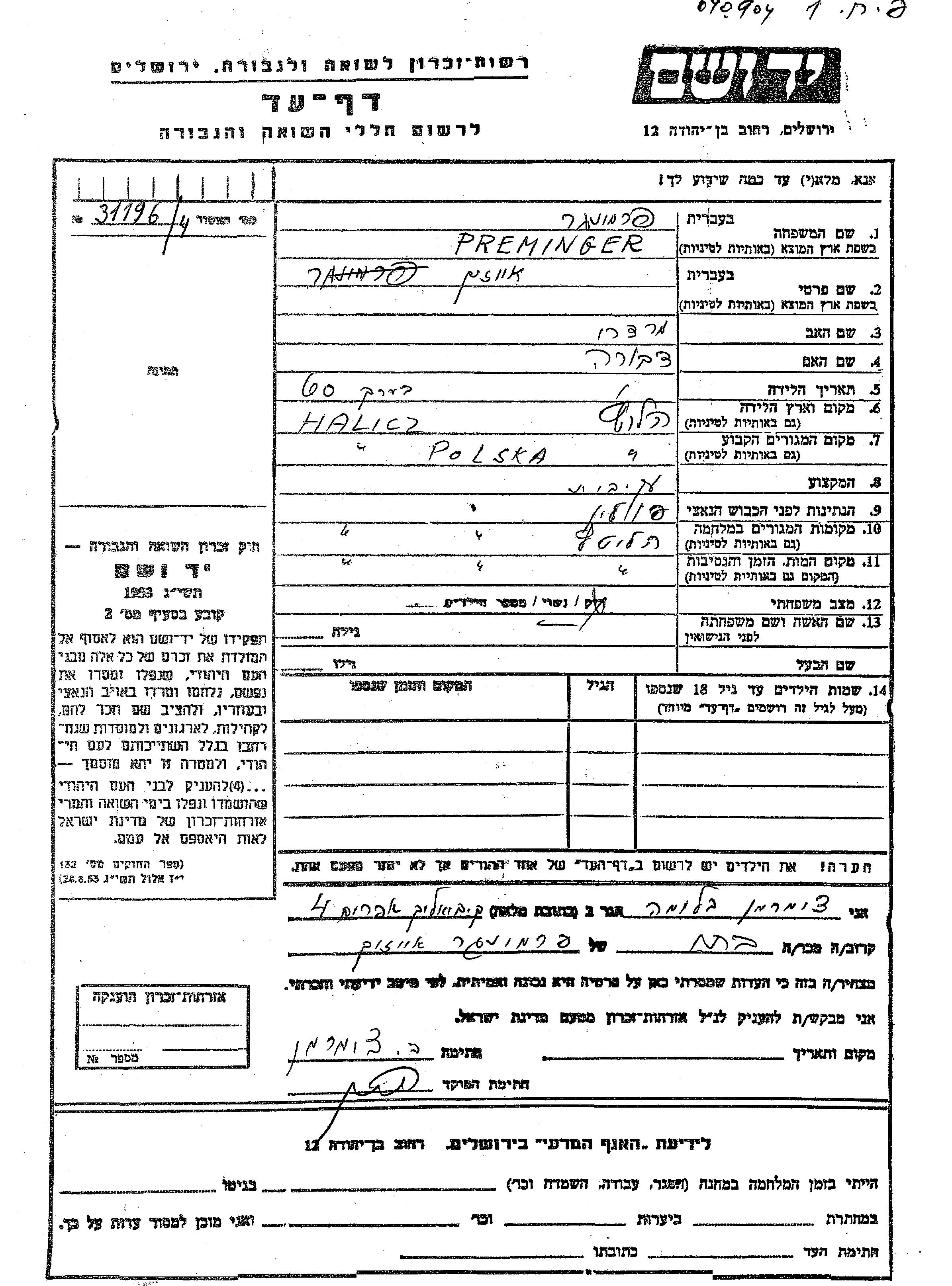 יד ושם - המפעל להנצחת השמות בדפי עד