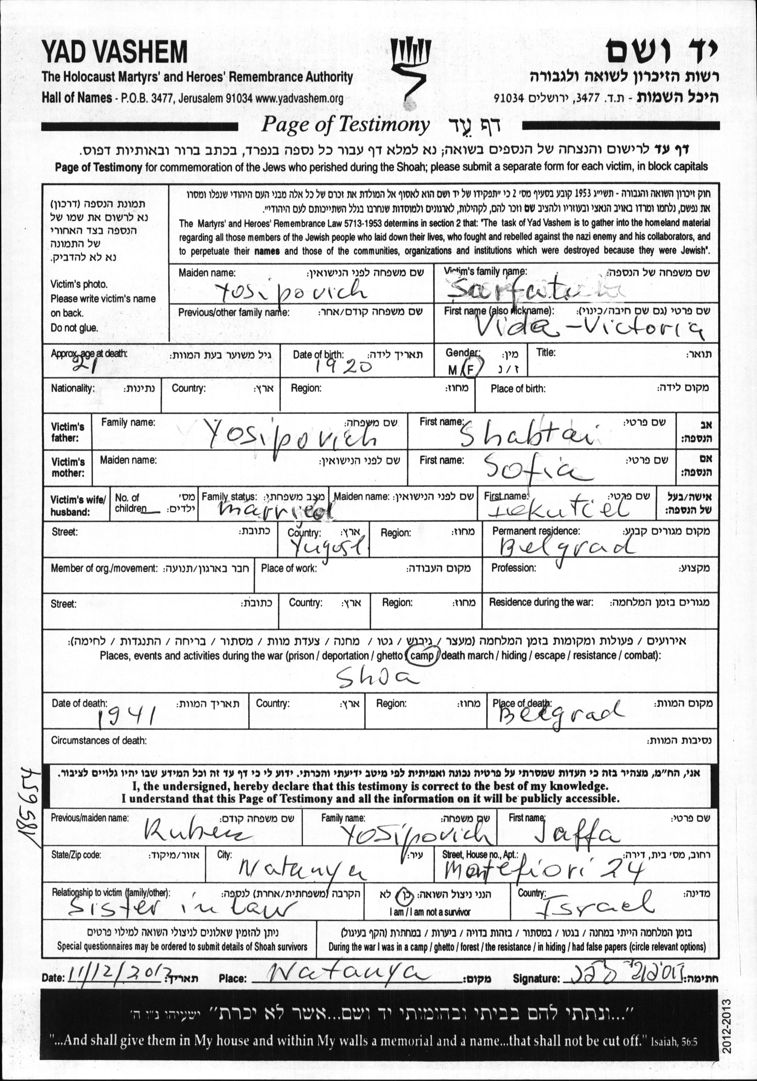 חיפוש שם מוסר דף העד. חיפוש לפי כל שם פרטי, כולל כינוי או שם חיבה