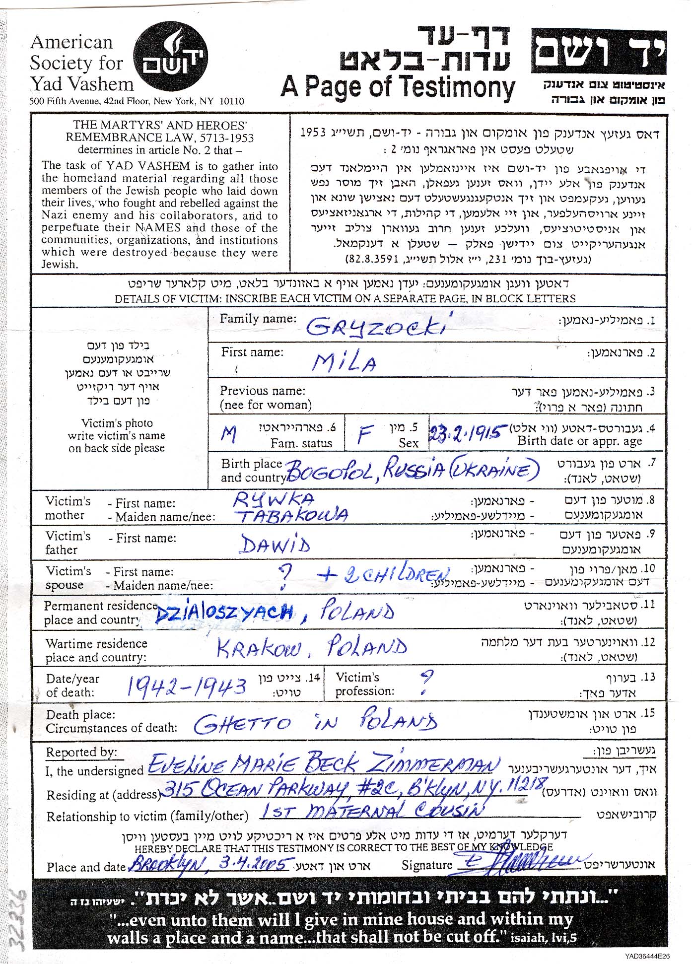 Search by name of any place during the Holocaust period: Town,Village, Camp, Ghetto, District, Region or Country