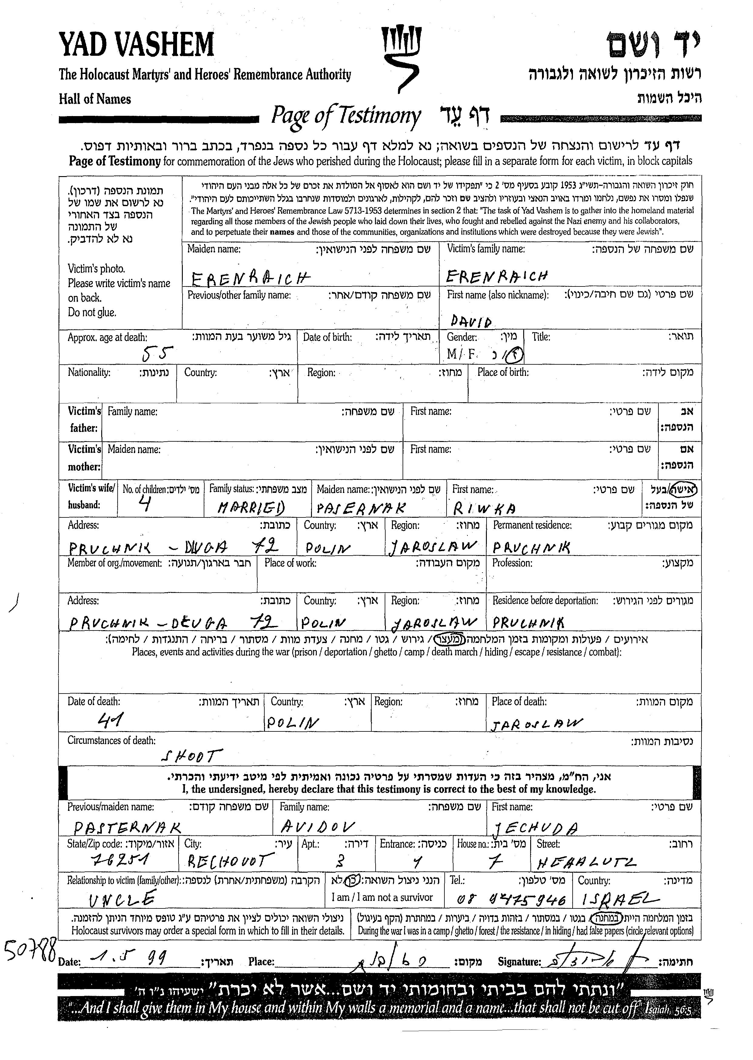חיפוש שם מוסר דף העד. חיפוש לפי כל שם פרטי, כולל כינוי או שם חיבה