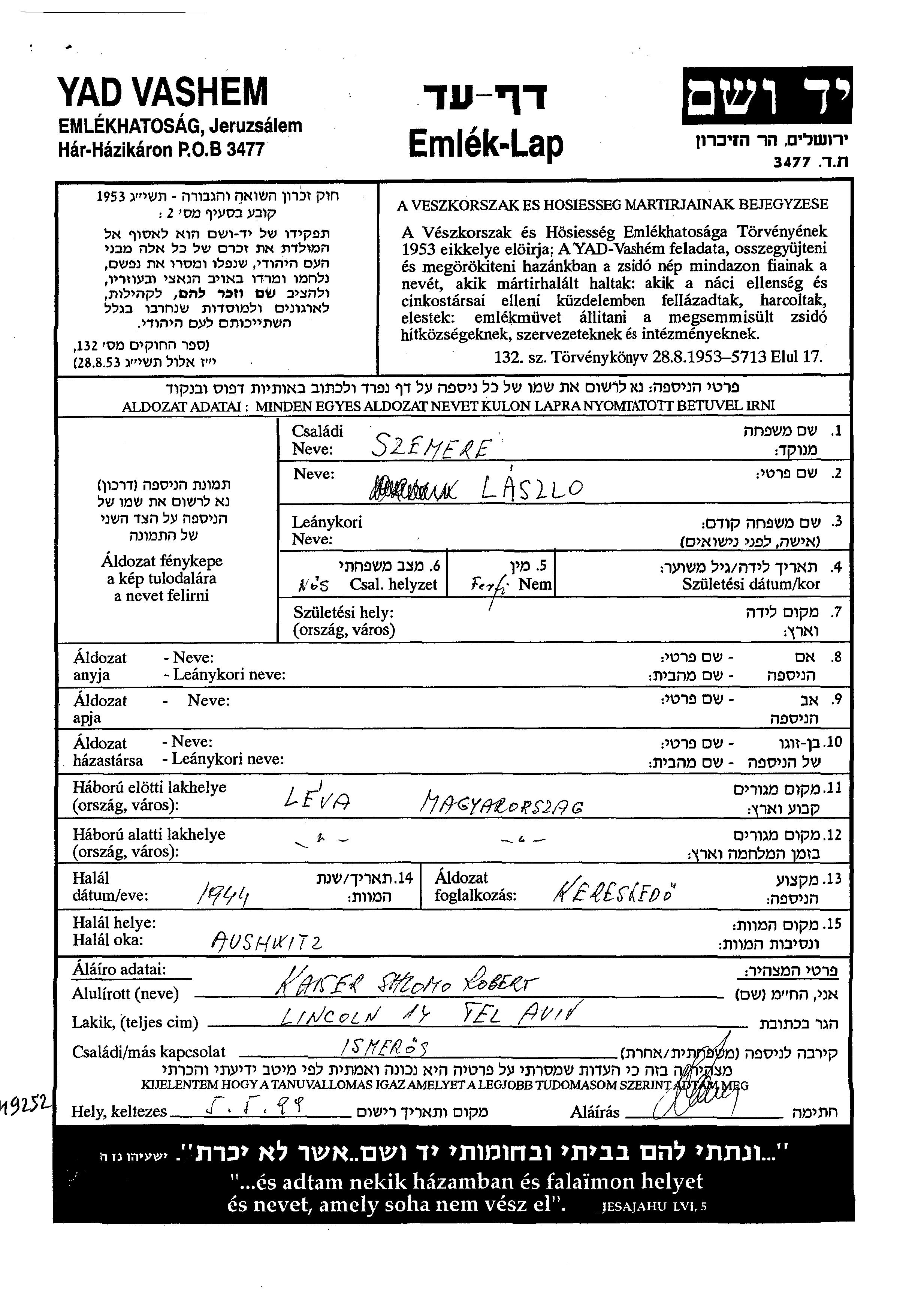 חיפוש שם מוסר דף העד. חיפוש לפי כל שם פרטי, כולל כינוי או שם חיבה