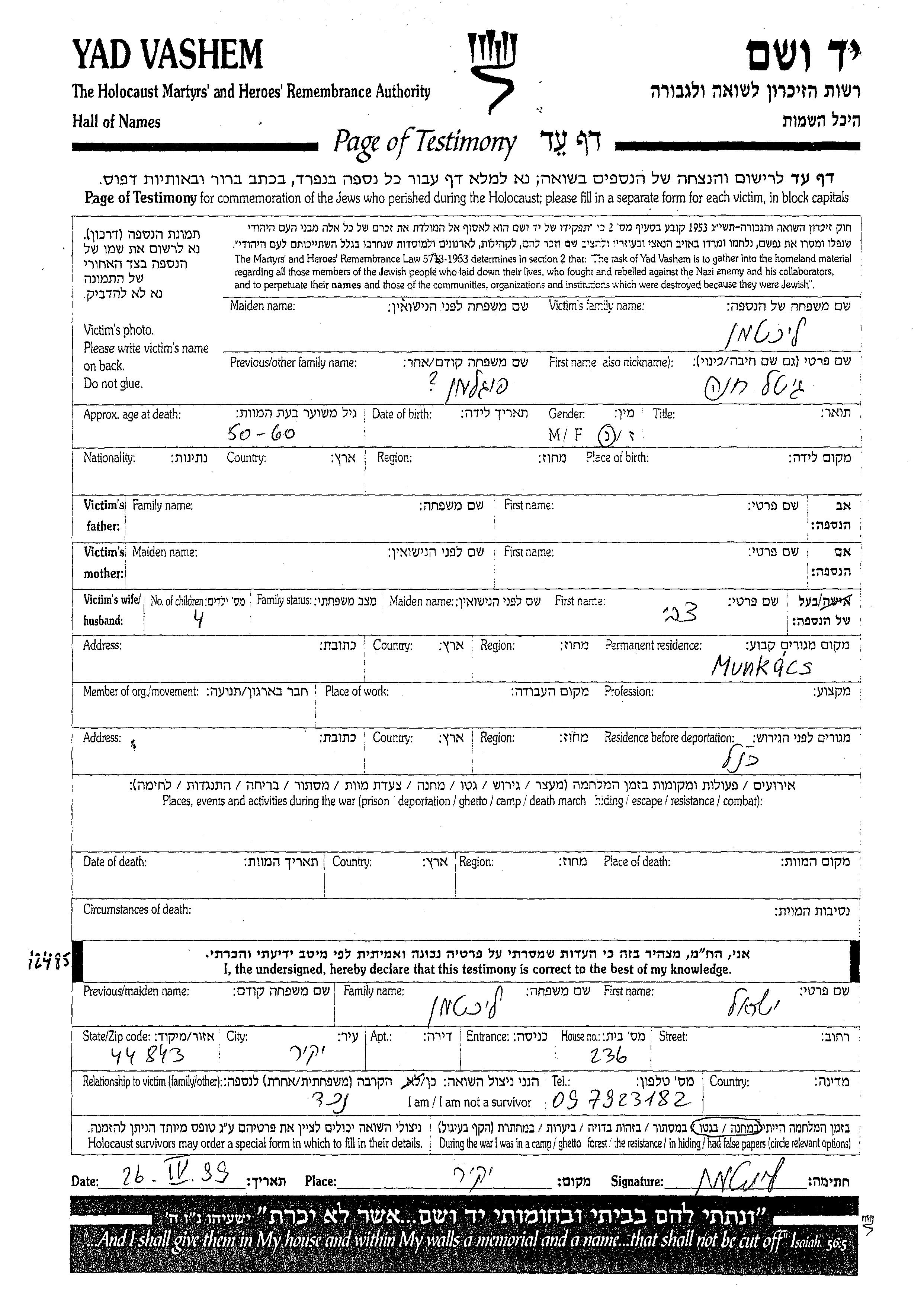 יד ושם - המפעל להנצחת השמות בדפי עד