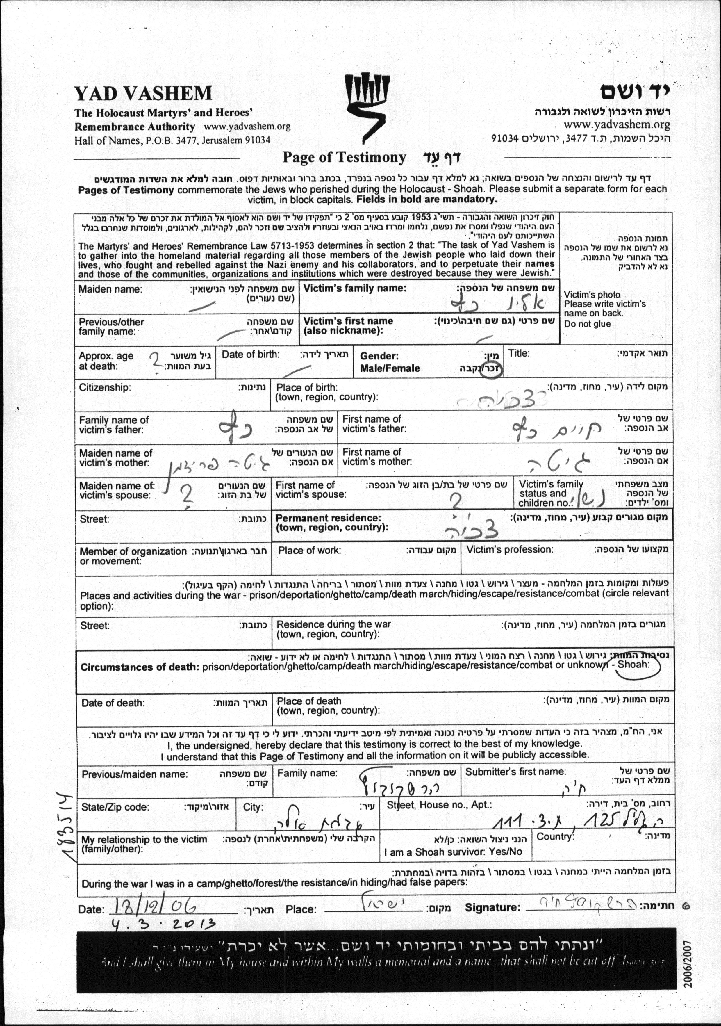 חיפוש שם מוסר דף העד. חיפוש לפי כל שם פרטי, כולל כינוי או שם חיבה