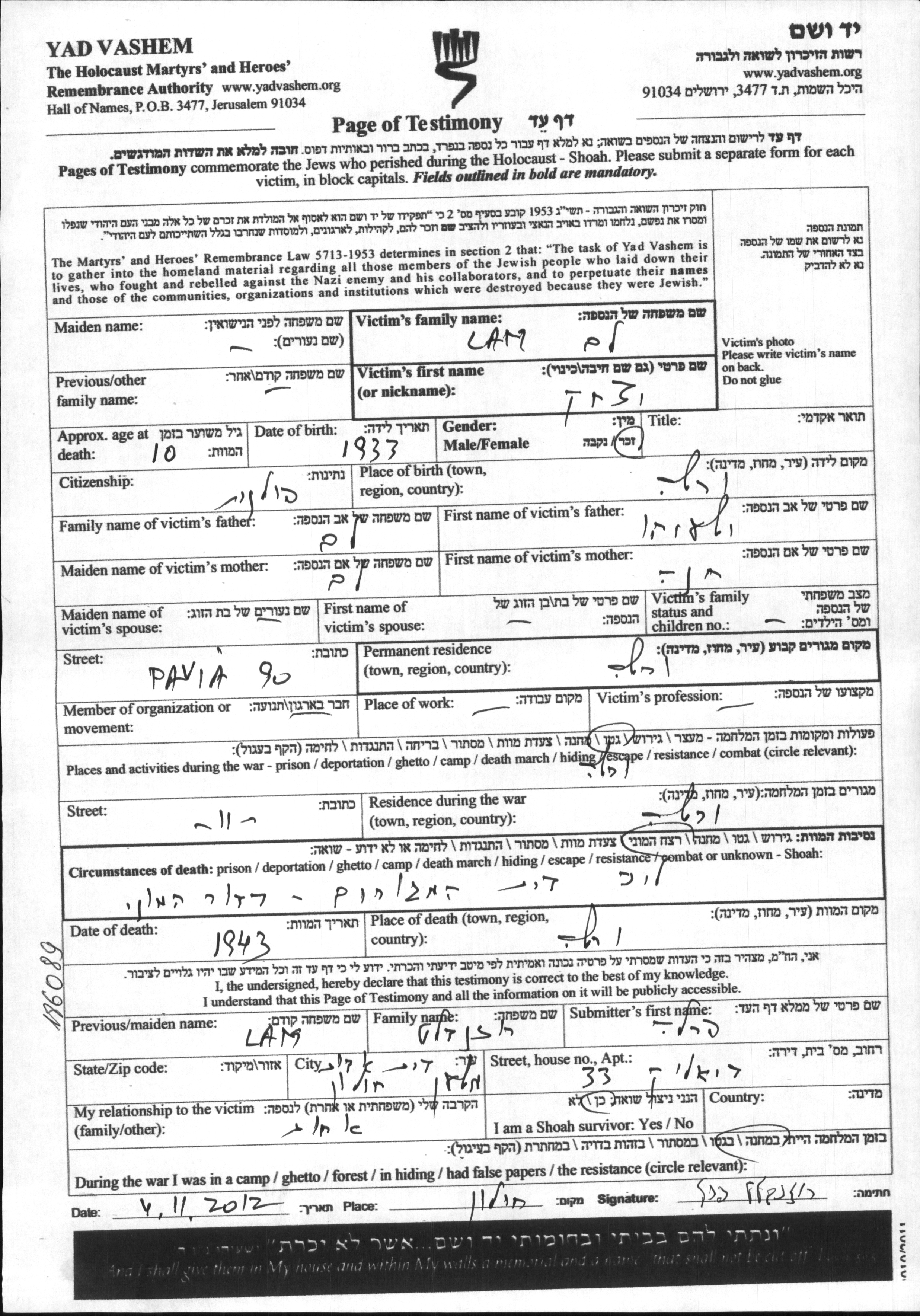 יד ושם - המפעל להנצחת השמות בדפי עד