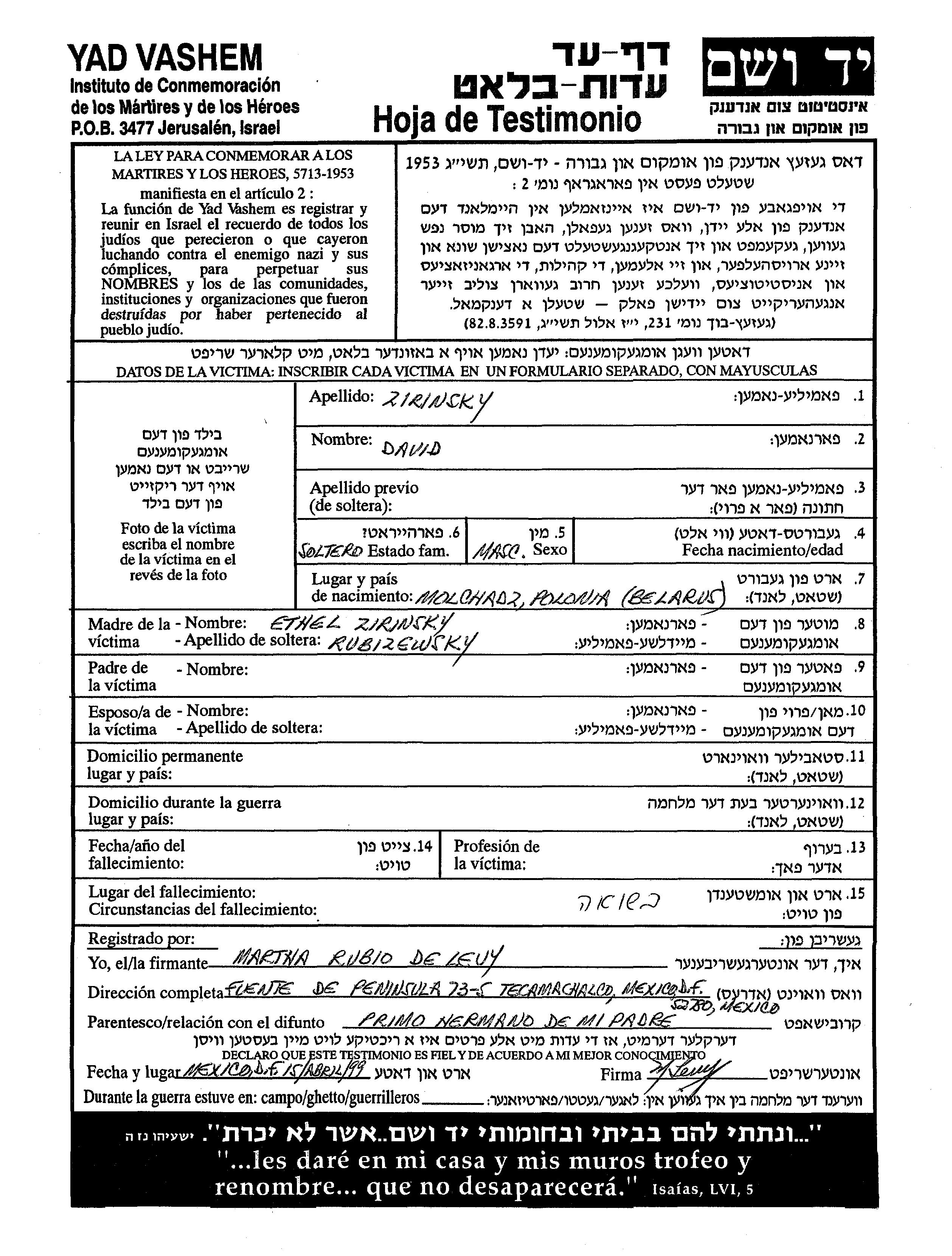 חיפוש שם מוסר דף העד. חיפוש לפי כל שם פרטי, כולל כינוי או שם חיבה